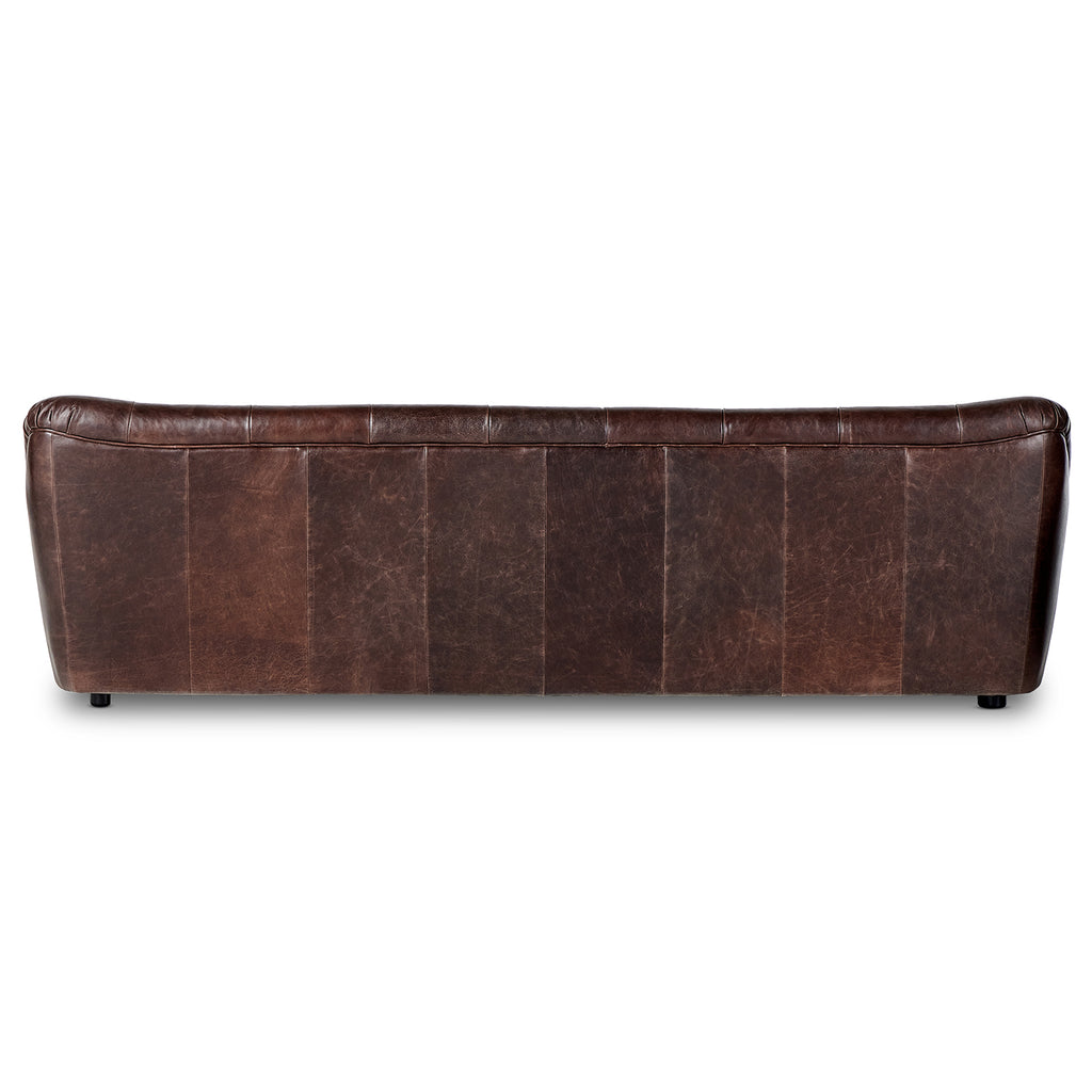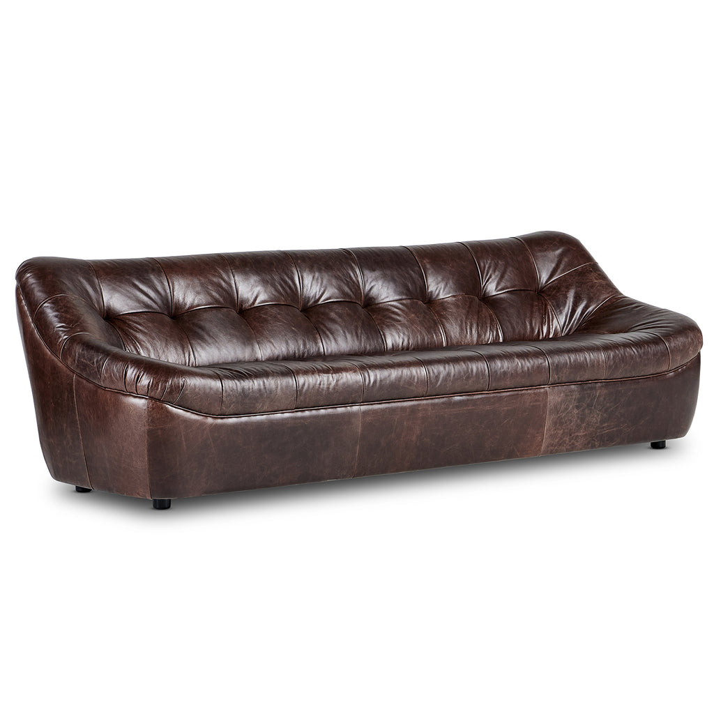 Modern meets vintage on a 360-degree swivel. Designed with comfort in mind, this armless sofa style is upholstered in a vintage-like top-grain leather with lustrous highs and lows. Blind tufting and subtly flared sides offer a seating style truly made for lounging.
