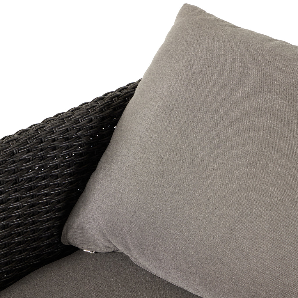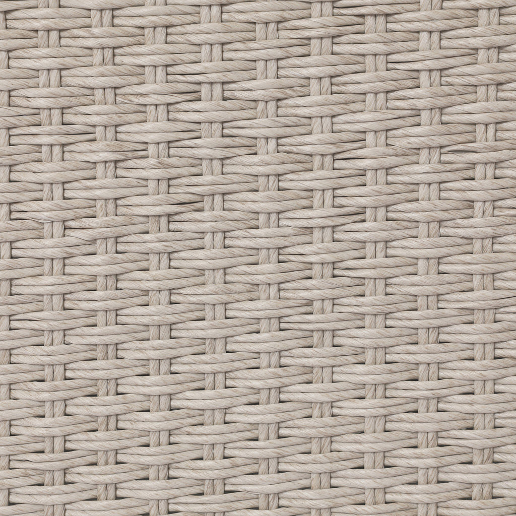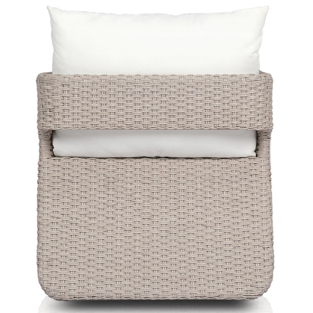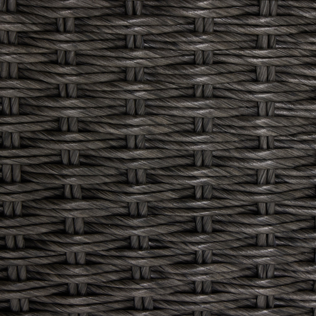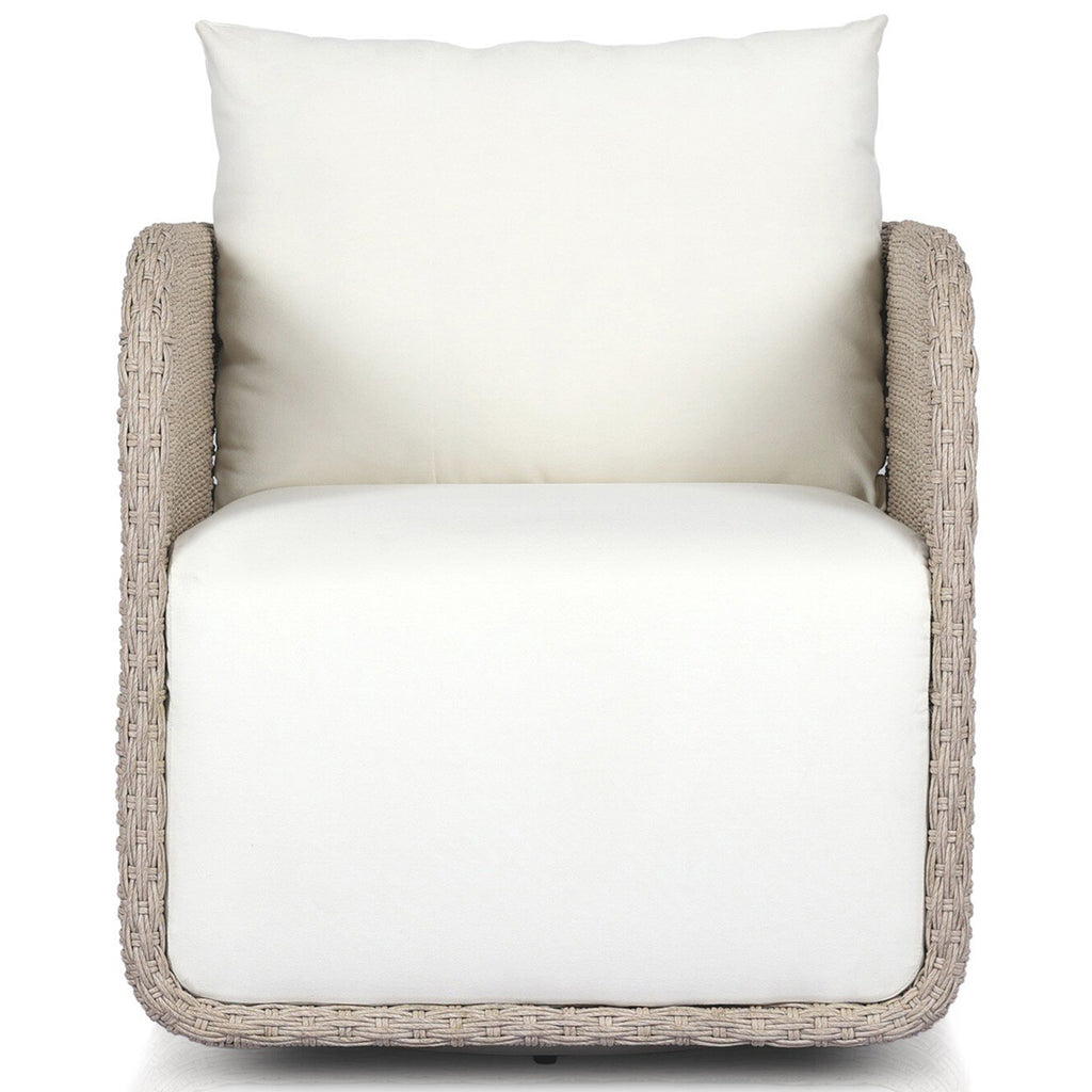 Work some texture into your outdoor styling. Charcoal all-weather wicker shapes a wraparound frame with rear cutout detailing, finished with a 360 swivel. Thick and durable, light gray seating makes this whole outdoor swivel chair modern and monochromatic. Cover or store indoors during inclement weather and when not in use.