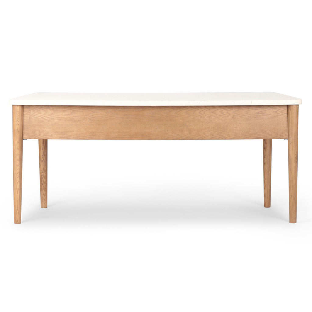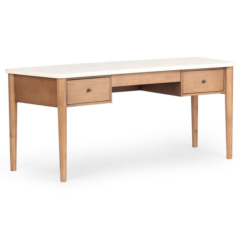 Set a light tone for your workspace with a material-driven desk of cream marble and amber ash. A clean, streamlined design with tapered cylinder legs and side drawers.