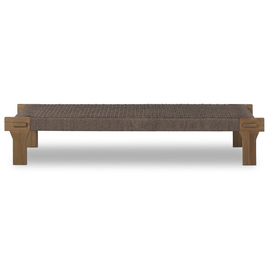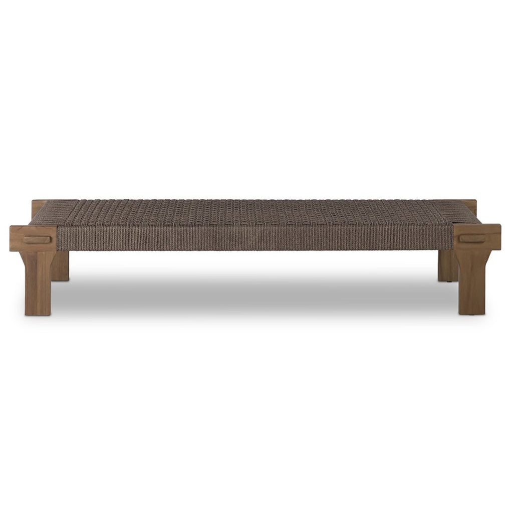 Create an outdoor space that transports you to far corners of the globe. Inspired by traditional designs found throughout Indonesia, this outdoor bench features a beautifully crafted frame made of FSC-certified solid teak with pull-through details and monochromatic weaving throughout. Cover or store indoors during inclement weather and when not in use.