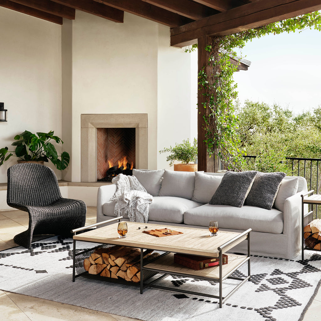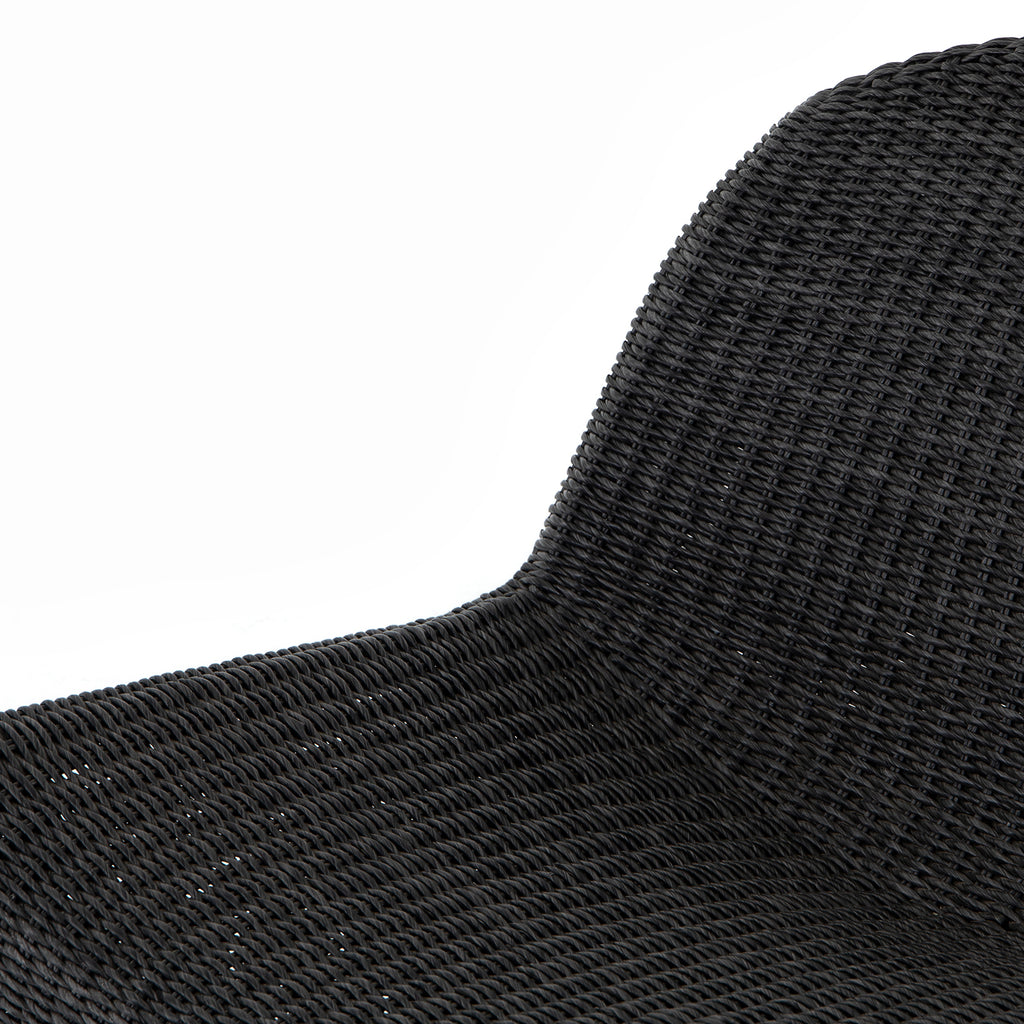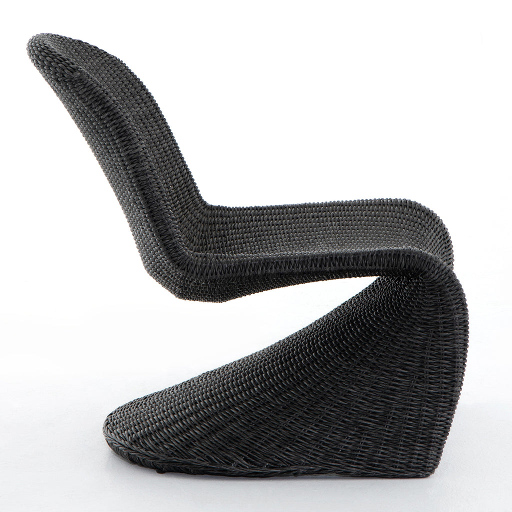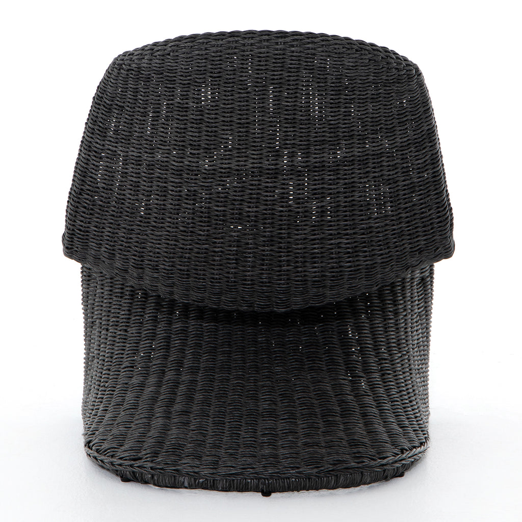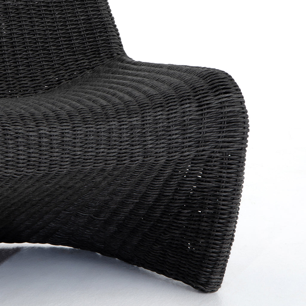 Strike a pose. Finished in a vintage white or vintage coal, all-weather wicker seating curves for shapely intrigue, indoors or out. Cover or store inside during inclement weather and when not in use.