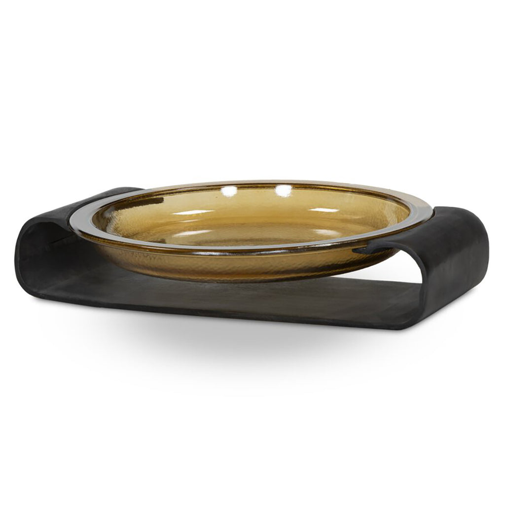 Strike a balance. This cast glass bowl is set down in a curved aluminum frame, with rounded edges softening the grand scale for everyday use.