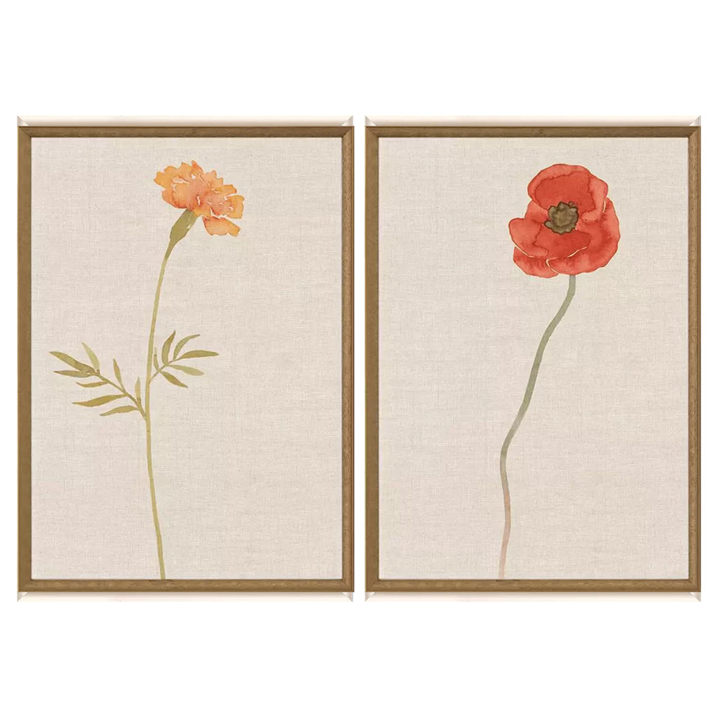 Delicate flower stems are framed in an antique gold wood with embossed weave pattern.
