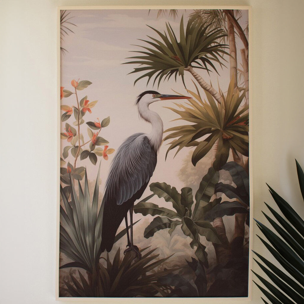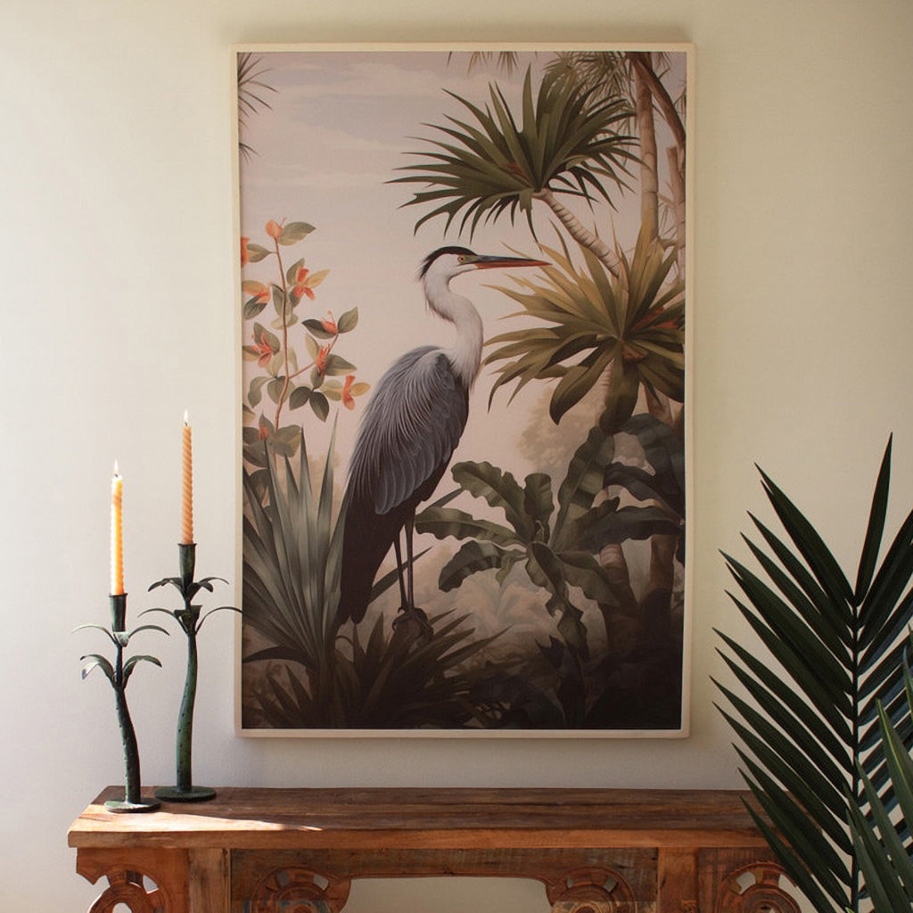 Add this Majestic bird to any wall. This framed heron print makes a splash on neutral or dark walls. It has painted details and stands 47in H