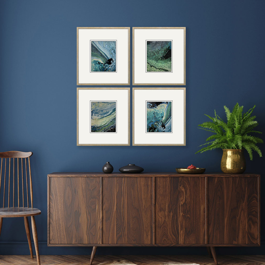 Exclusive hand finished mixed media. Framed in a sleek champagne gold wood.