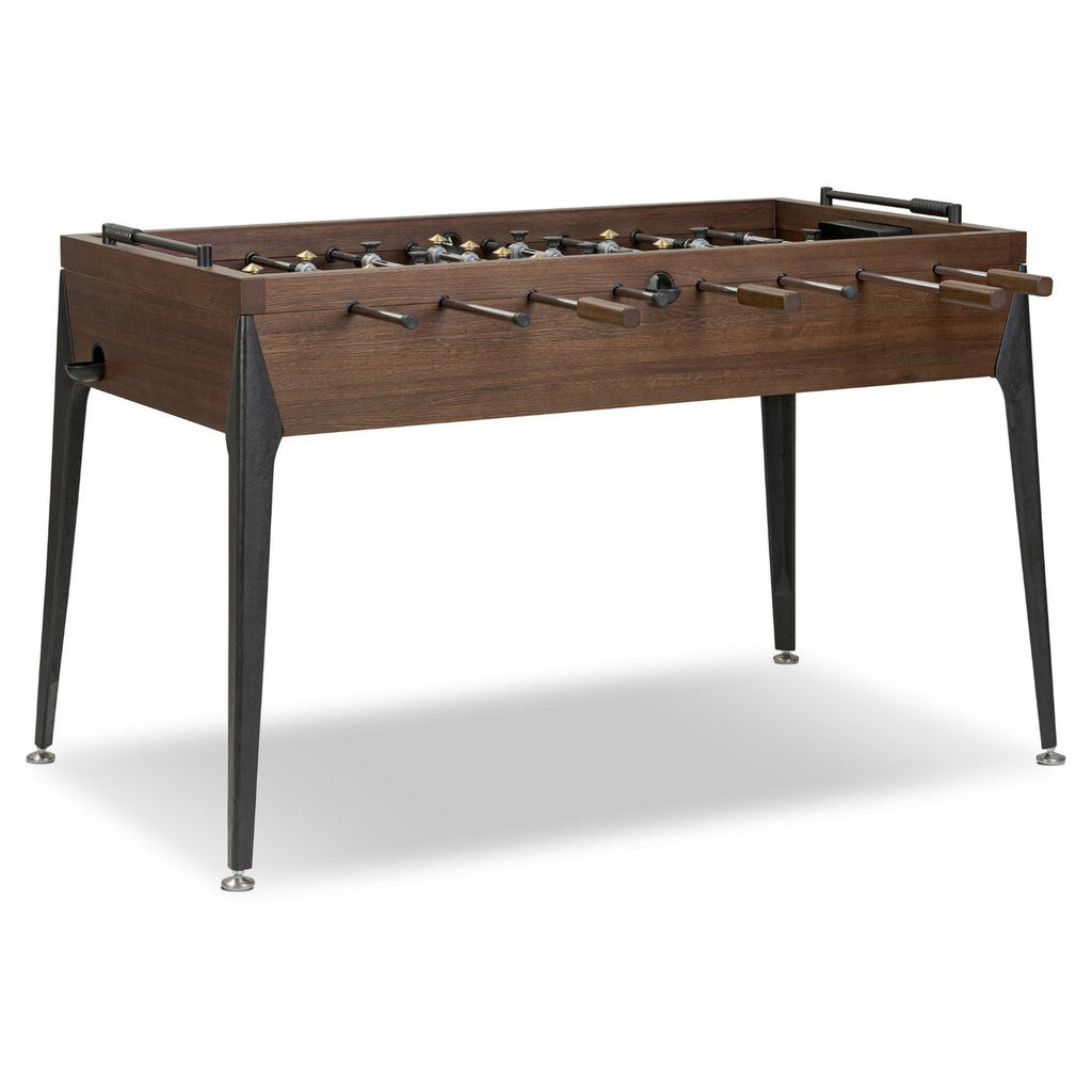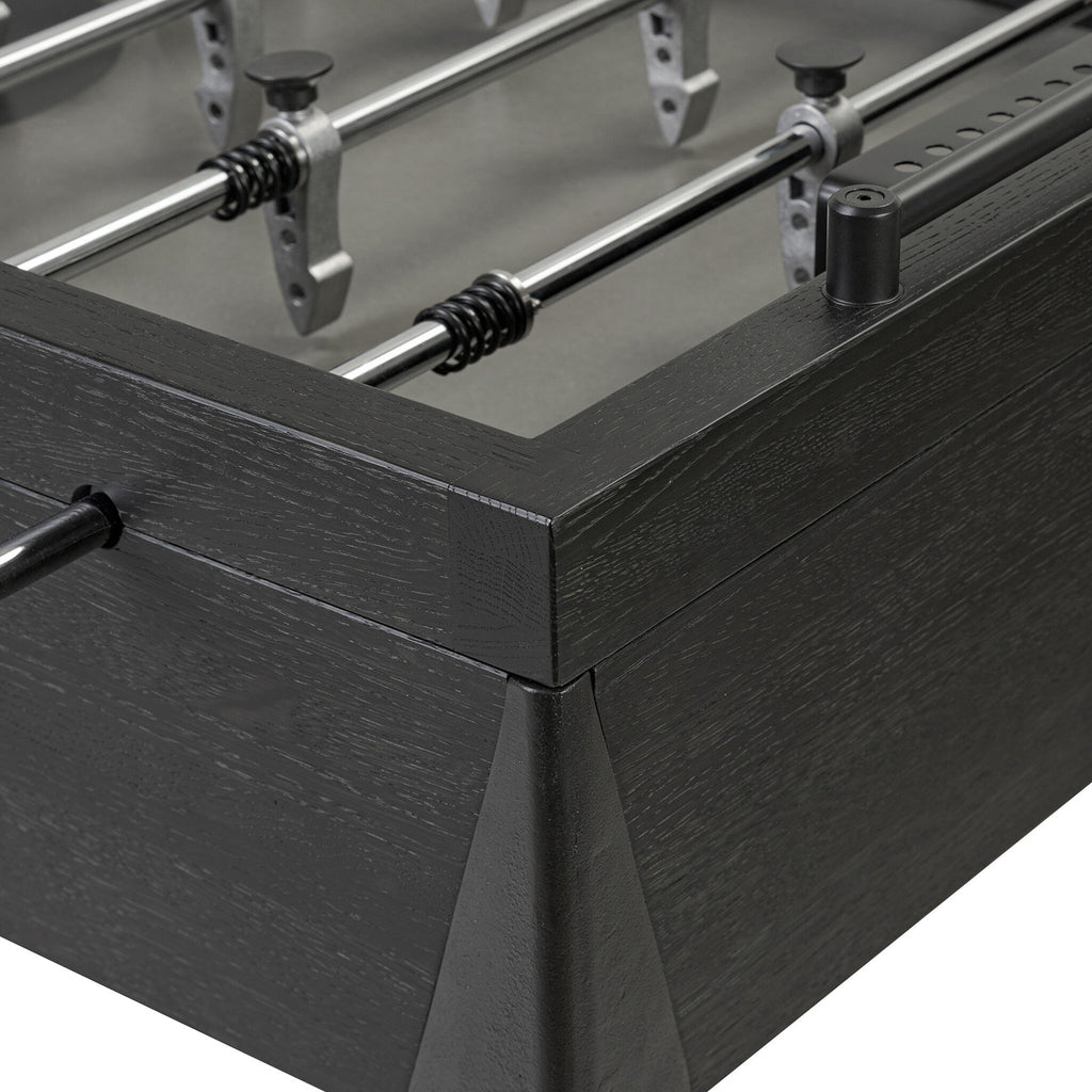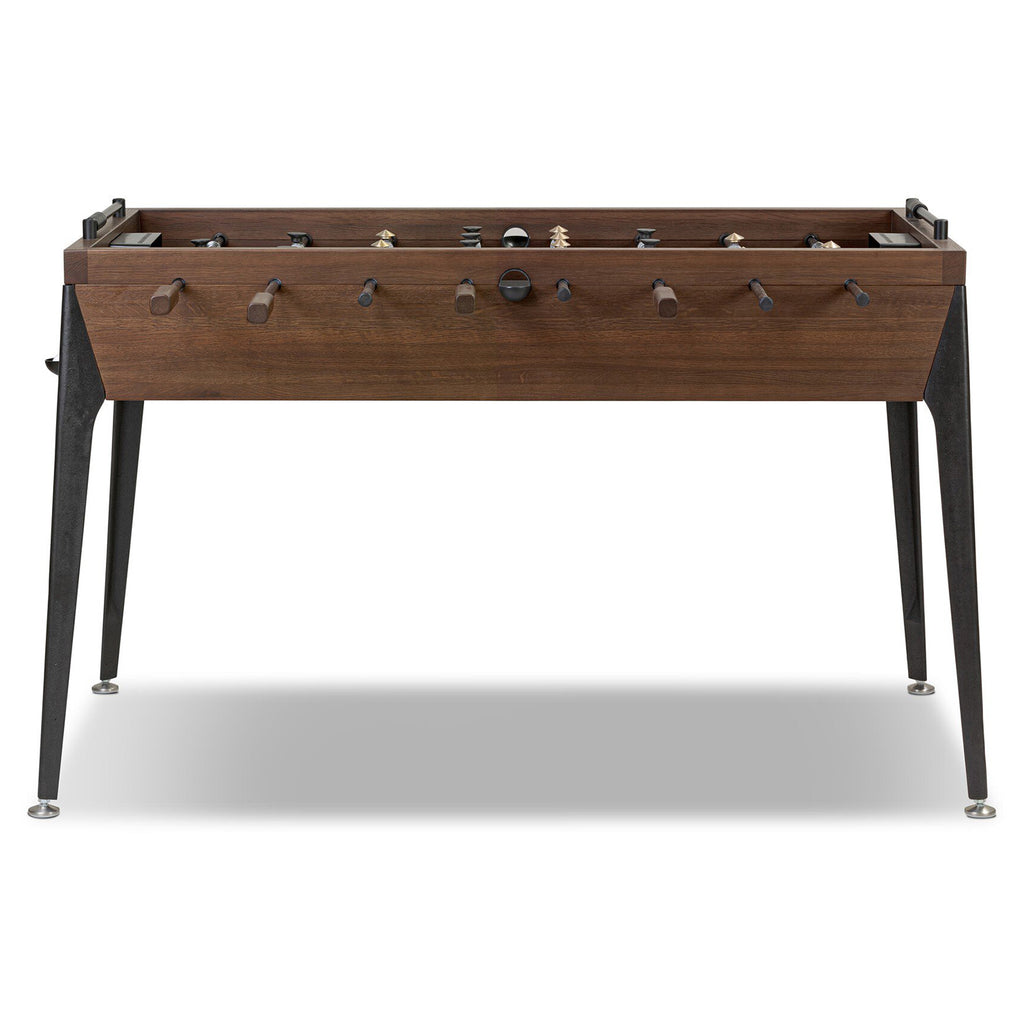 Streamlined for fun. This foosball table features a concrete playing surface and distinctly detailed players in cast aluminum. Rounded square wooden handles and cylindrical metal score counters tie together the sleek, industrial look of this foosball table, finished with tapered cast aluminum legs. District Eight handcrafts classic games, reimagined with quality materials and dedicated artisanship in a unique blend of fun and functionality.