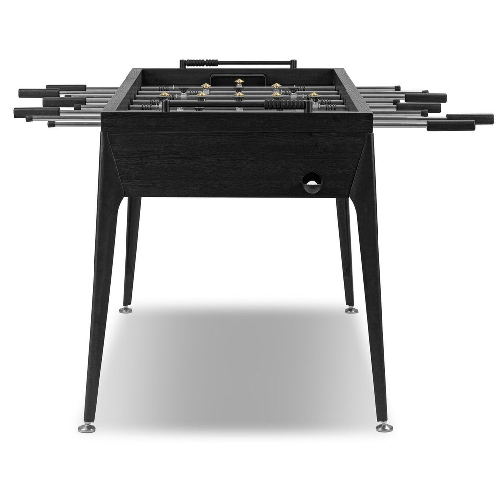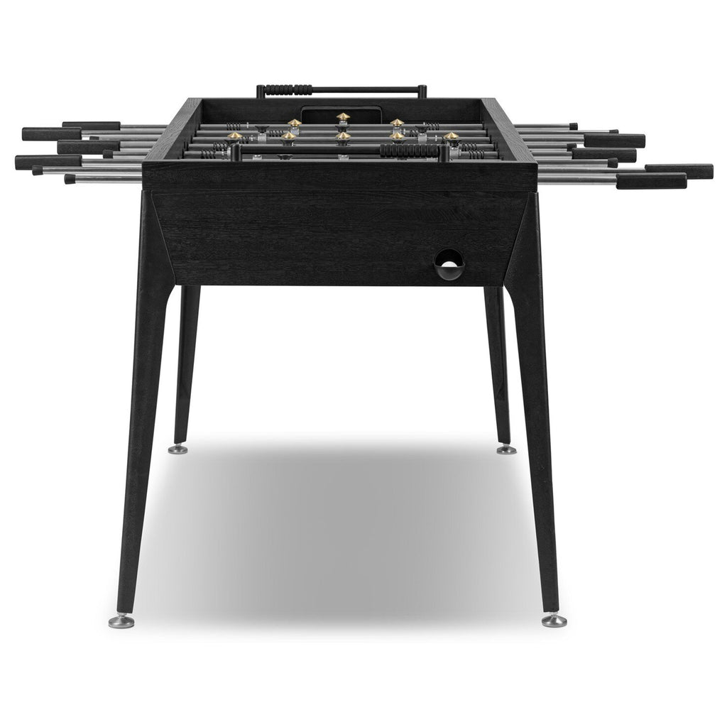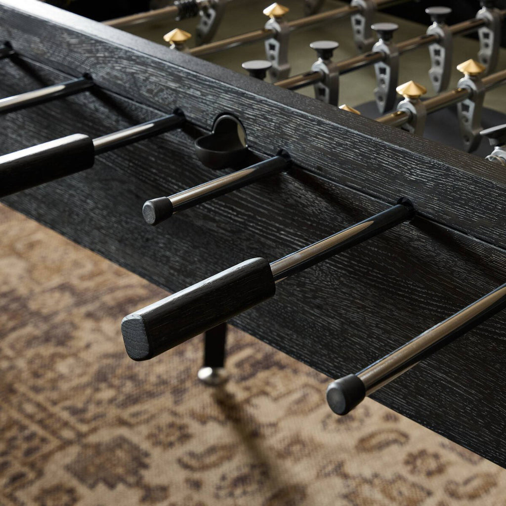 Streamlined for fun. This foosball table features a concrete playing surface and distinctly detailed players in cast aluminum. Rounded square wooden handles and cylindrical metal score counters tie together the sleek, industrial look of this foosball table, finished with tapered cast aluminum legs. District Eight handcrafts classic games, reimagined with quality materials and dedicated artisanship in a unique blend of fun and functionality.