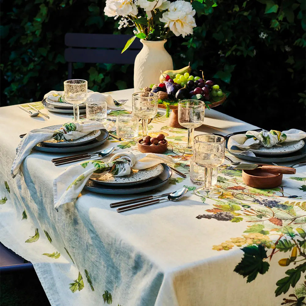 • This fabric is made from cotton - linen blend and it lays nicely on the table with its effortless look.