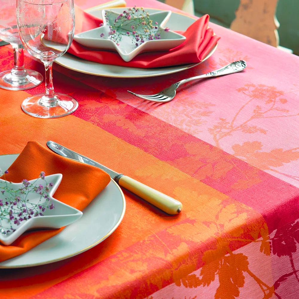 • Discover our elegant pure linen Jacquard table linen, which is soft and pleasant to the touch, thanks to an innovating weaving process.