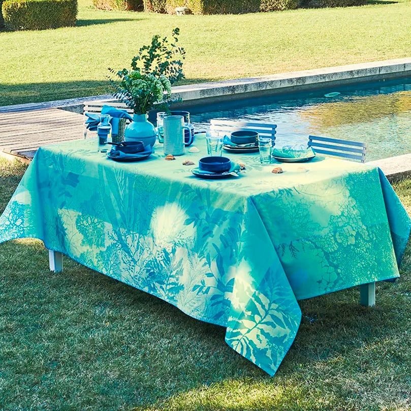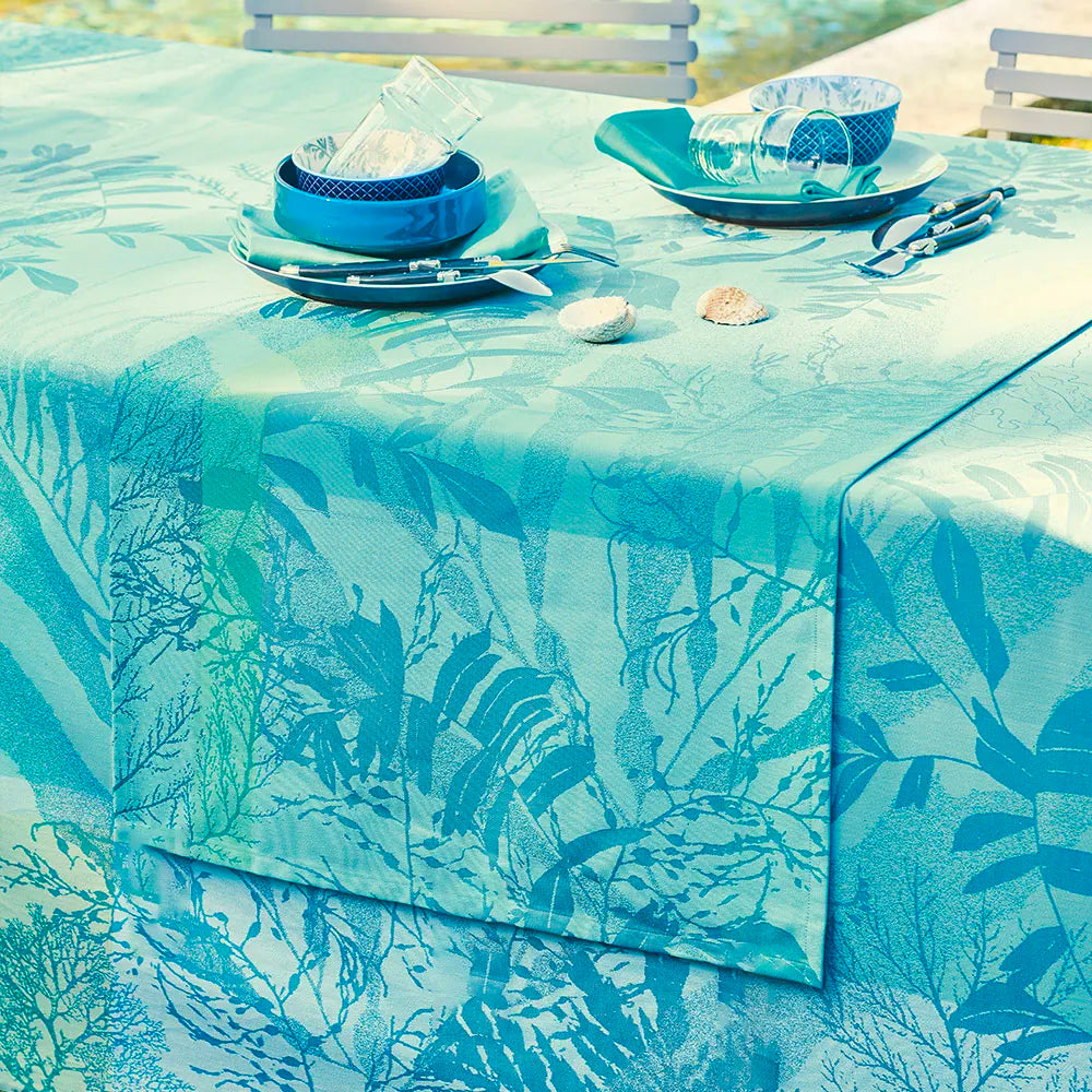 Garnier Thiebaut Ouessant Turquoise Jacquard Tablecloth