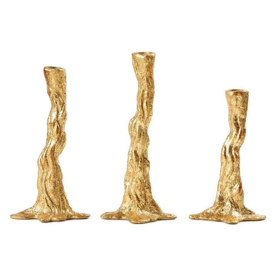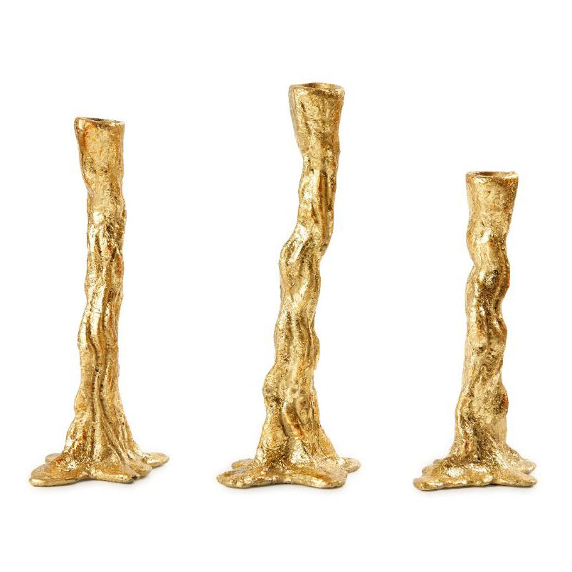 Show off your cultivated tastes with our Branch Candlestick, an abstract interpretation of branches or roots cast in metal and hand-leafed by our master artisans. Style all three together for an effortlessly polished decorative effect atop of dining table, or use marching pairs in graduated sizes to create a nuanced motif. Natural elements with bold finishes make V&H’s accessories feel organic and luxurious. Please note that each item is finished with a felt bottom to prevent scratching.