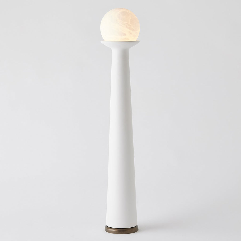 Transform your space with the Alabaster Bulb Tower Lamp. This elegant piece combines Portuguese slip-molded ceramic with an Italian alabaster bulb, casting a warm glow that showcases the stone's beautiful details. As alabaster is a natural product, please be aware that there will always be variations in veining and color. We celebrate these differences, as they give each piece its unique character, making them one-of-a-kind creations.
