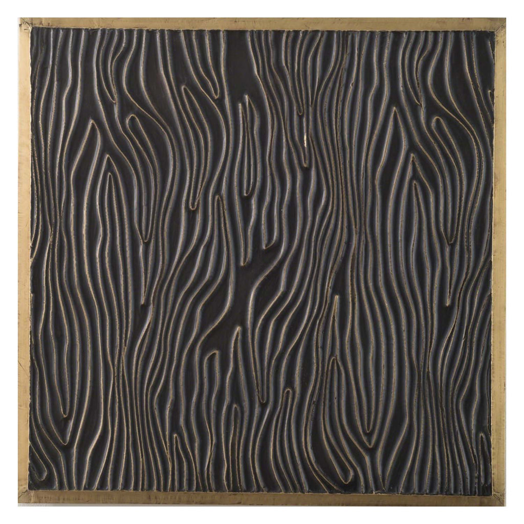A new additional in wall decor, the Global Views Forest Panels exhibit an abstract faux bois pattern in various brass and bronze finishes. The MDF substrate is wrapped entirely in brass sheet which has been hand-embossed with the forest pattern. Next, the panel is given an oiled bronze finish and the faux bois relief is rubbed to expose the golden brass underneath.
