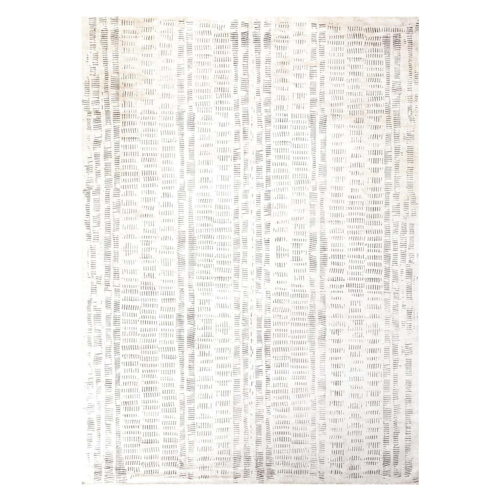 Frequency is a beautifully hand-loomed bamboo-silk rug. The original artwork printed on the rug was painted by the designers in California, using traditional Chinese ink. It was inspired by African mud cloth. Available in Charcoal and Cream.