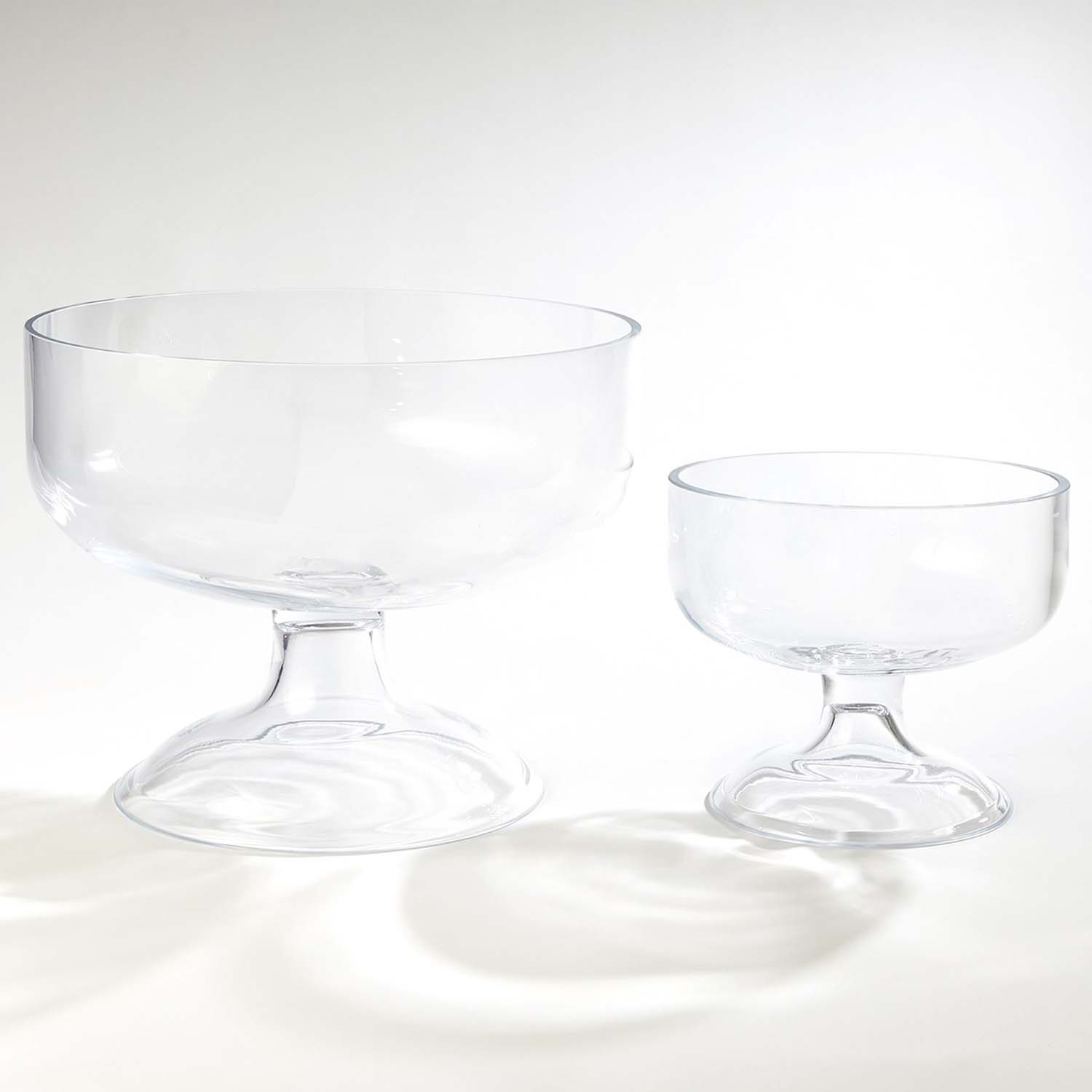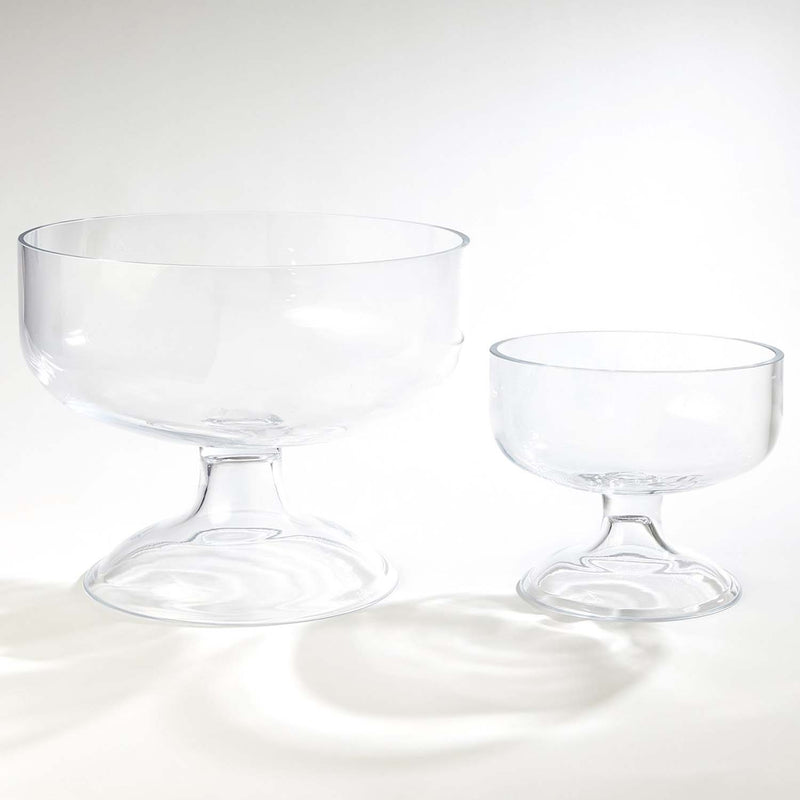 Quite large in stature, the Global Views Glass Compotes are made of clear molten glass mouth blown into a mold and perfect for displaying collectibles.