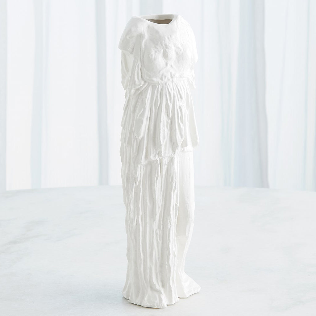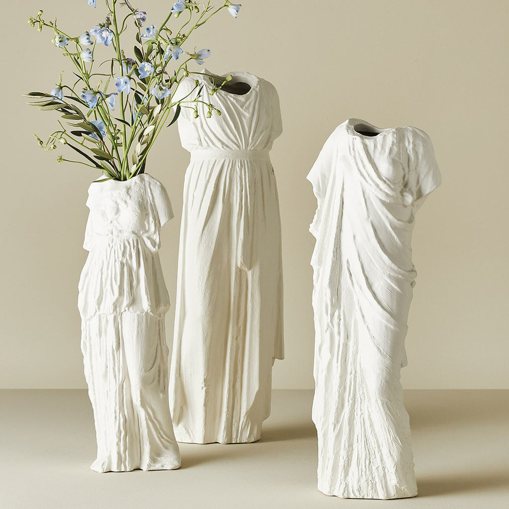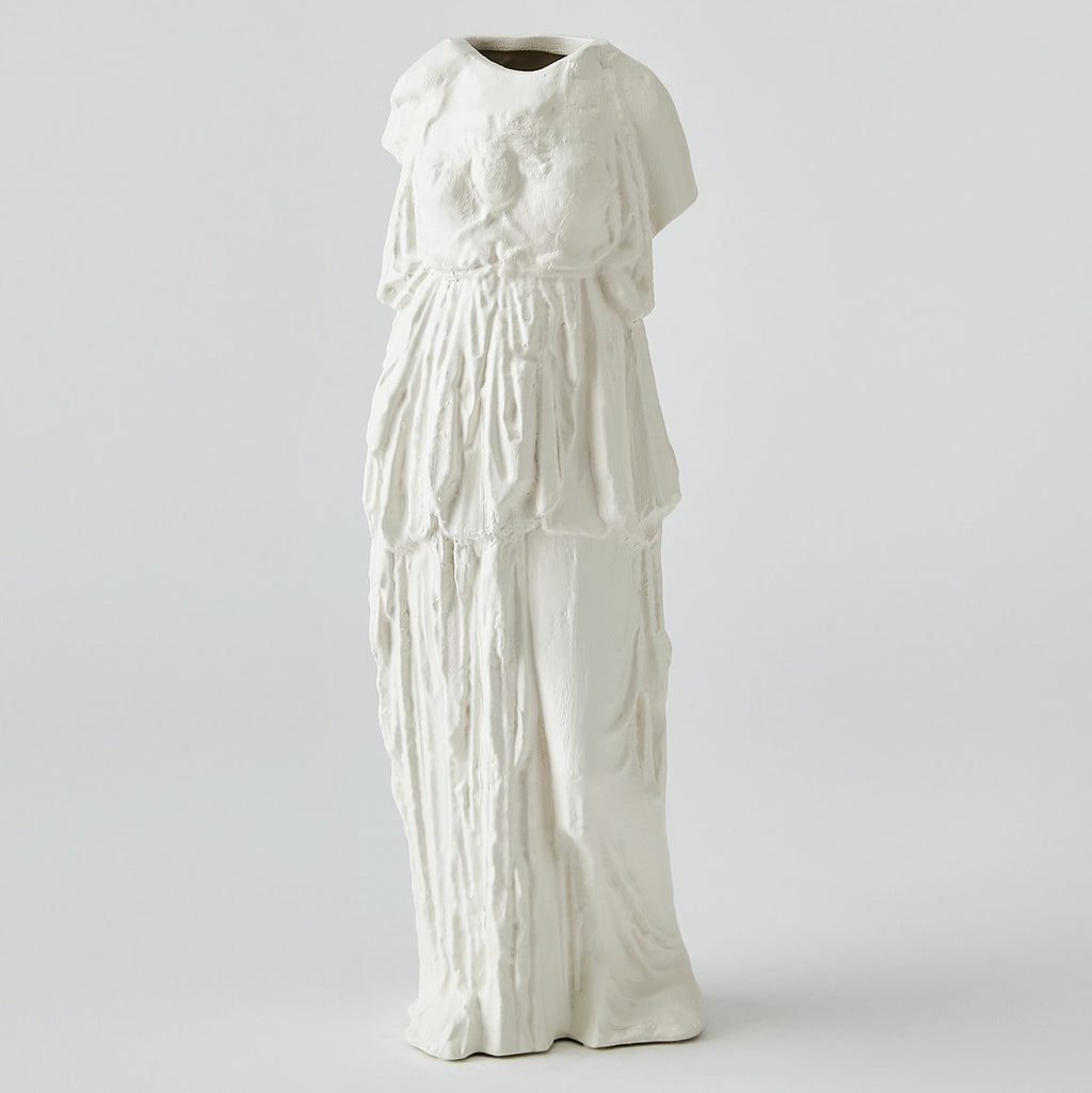 Inspired by the grace of ancient Greek sculpture, our Greco Vases showcase stunning female figures draped in a peplos, a flowing fabric that embodies classical elegance. Handcrafted from Italian slip-molded ceramic, each vase is a striking fusion of art and craftsmanship, perfect for any refined space.