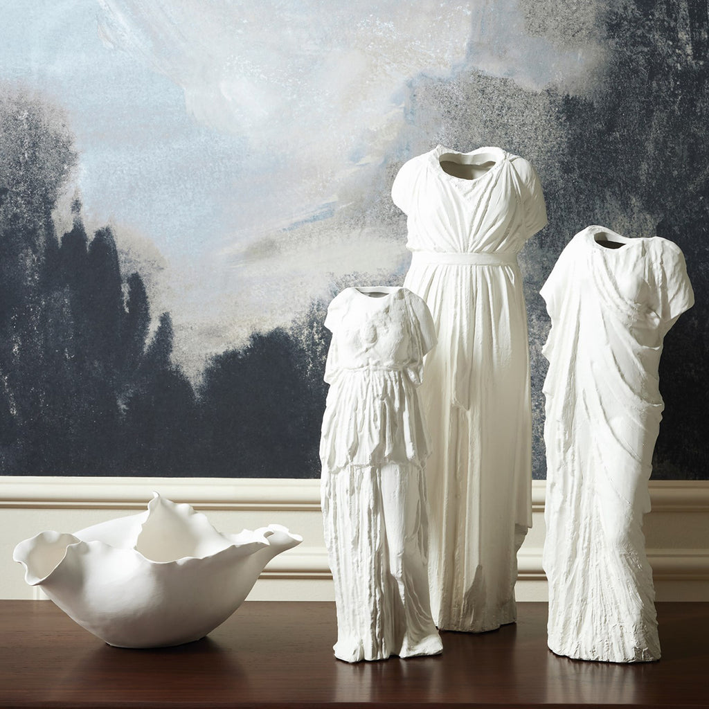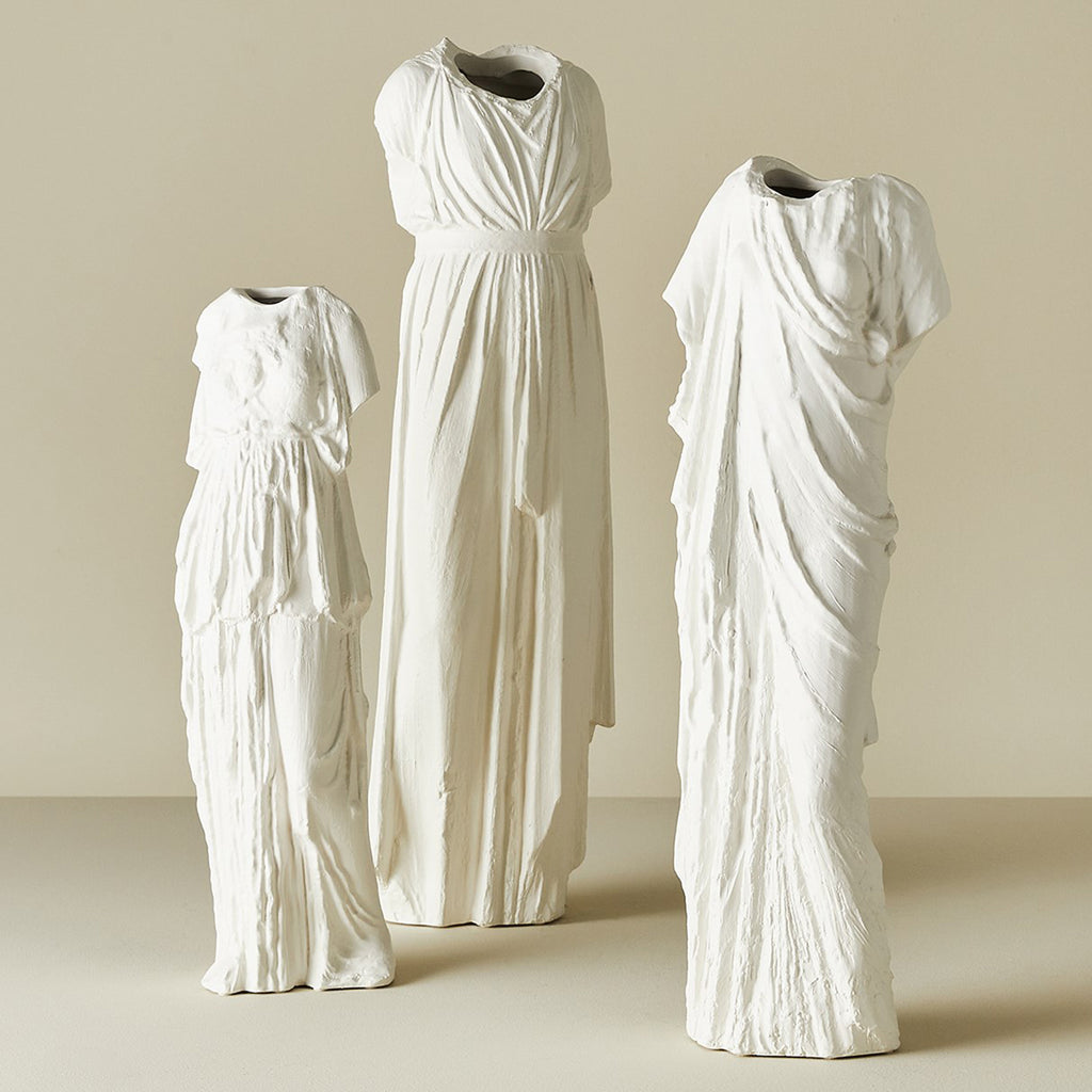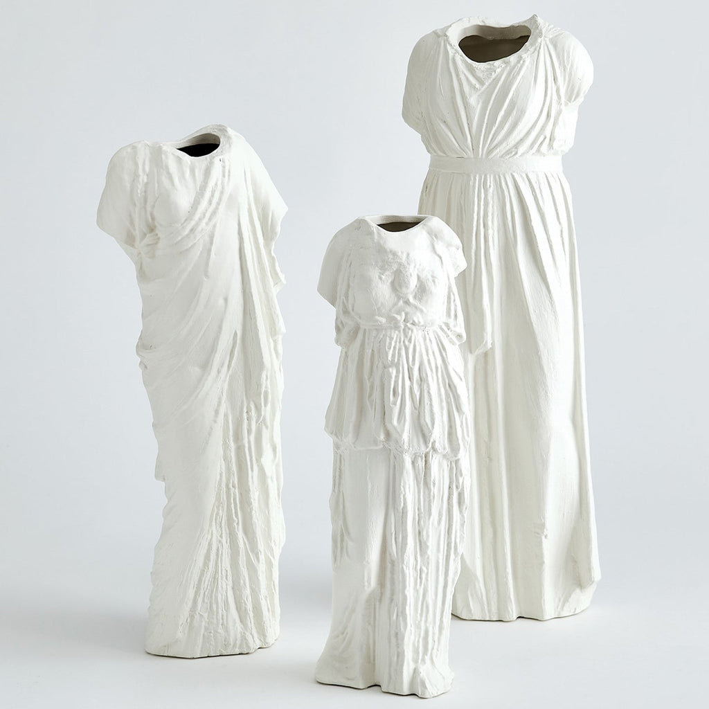 Inspired by the grace of ancient Greek sculpture, our Greco Vases showcase stunning female figures draped in a peplos, a flowing fabric that embodies classical elegance. Handcrafted from Italian slip-molded ceramic, each vase is a striking fusion of art and craftsmanship, perfect for any refined space.