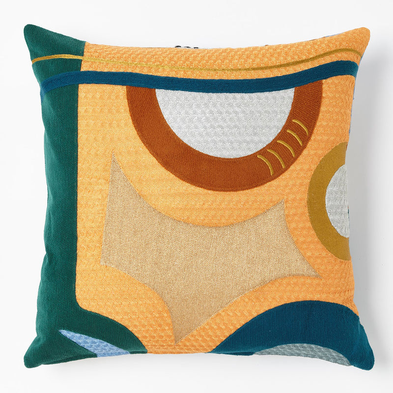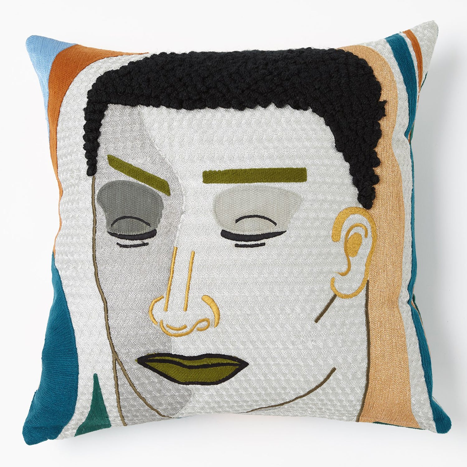 The Global Views Herr Hans Pillow is a modern take on a classic portraiture with hand embroidered cotton details and a down fill insert.