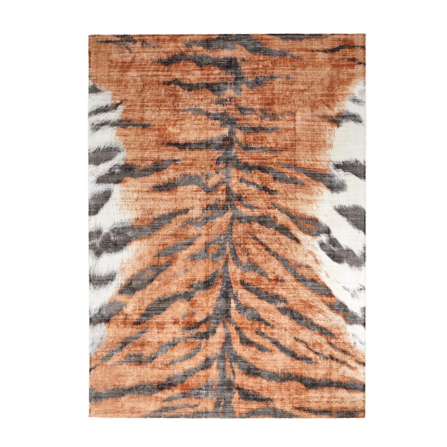 Walk on the wild side with our Global Views Tiger Stripe Rug made of bamboo silk and cotton construction blend.