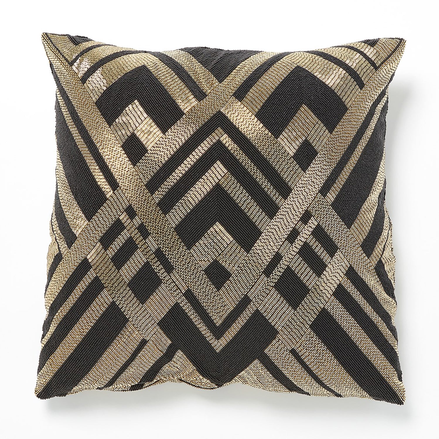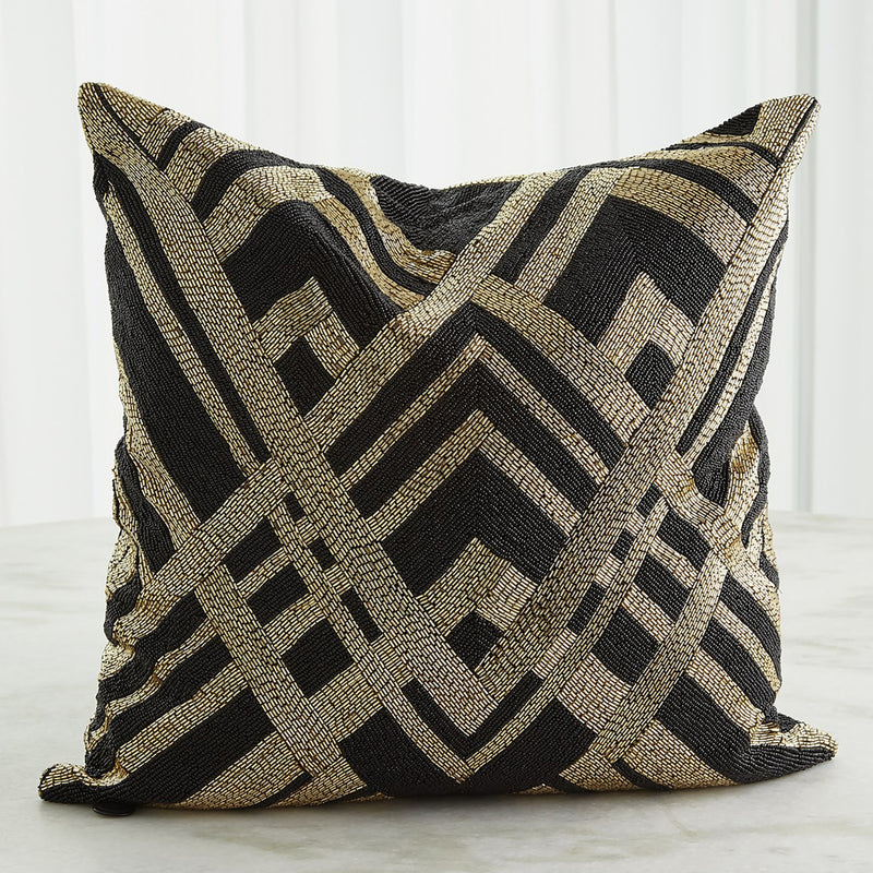 Made by hand, the Global Views Woven Lines Pillow is fully beaded in bugle and pearl beads. Down fill insert included.