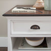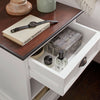 • Finish: White Distress & Deep Brown with Antique Brass hardware