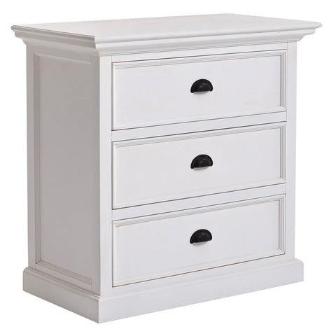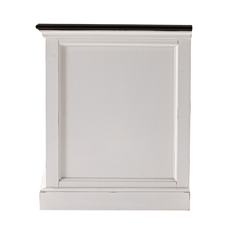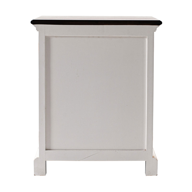 Working the exact same design credentials as its partner collections – a solid mahogany frame and meticulous traditional detailing to name two – with exposed its wooden top surface and treated it with a deep and dark wood stain that bounces the light. Also features distressed paintwork slightly so it channels a wonderful pre-loved vibe. This is a perfect combination of storage and style. Crown moulding is a charming feature of this drawer and shelving bedside companion. Handcrafted from kiln-dried solid mahogany, and hardware fabricated in an antique brass finish.