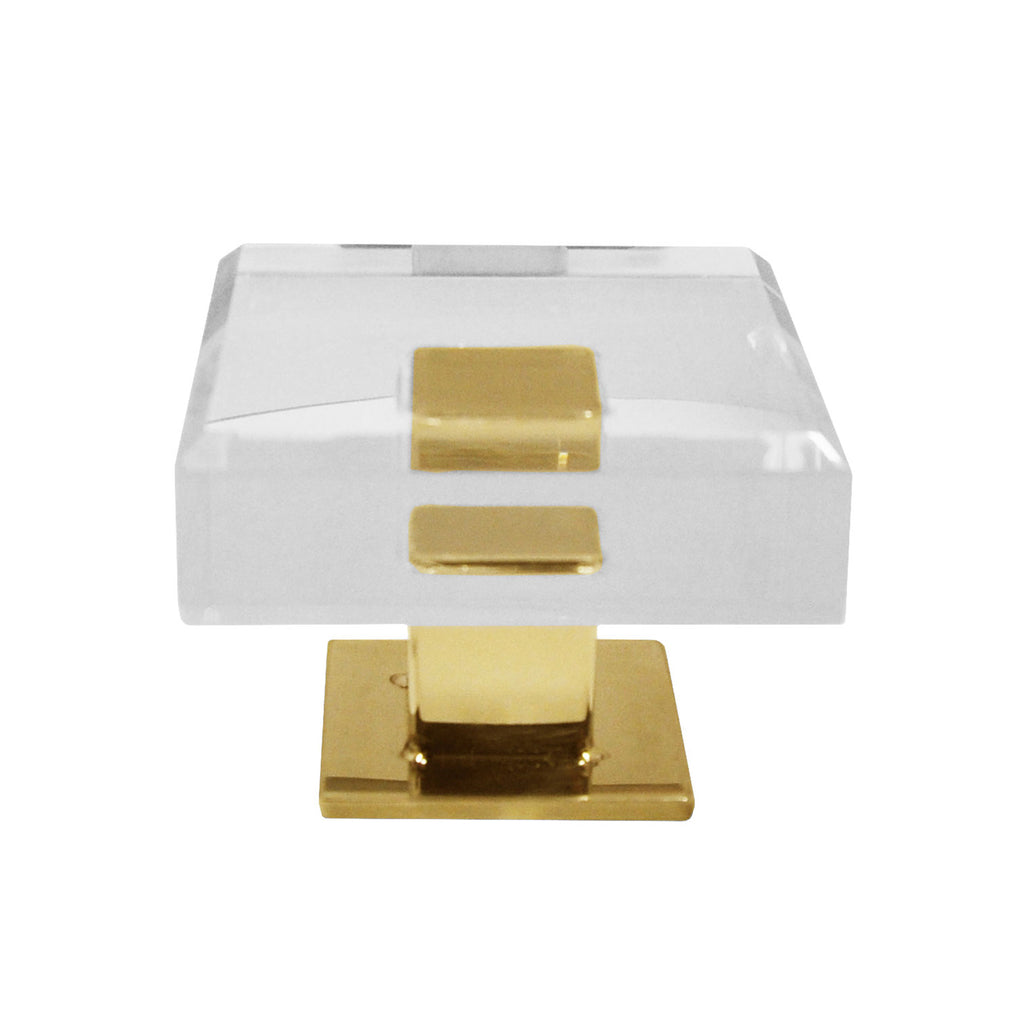 Accent details lend bold presences with this hardware from Worlds Away. Crafted from gorgeous materials, this hardware updates any space with touches of unexpected texture. Modern square acrylic knob with brass or nickel.