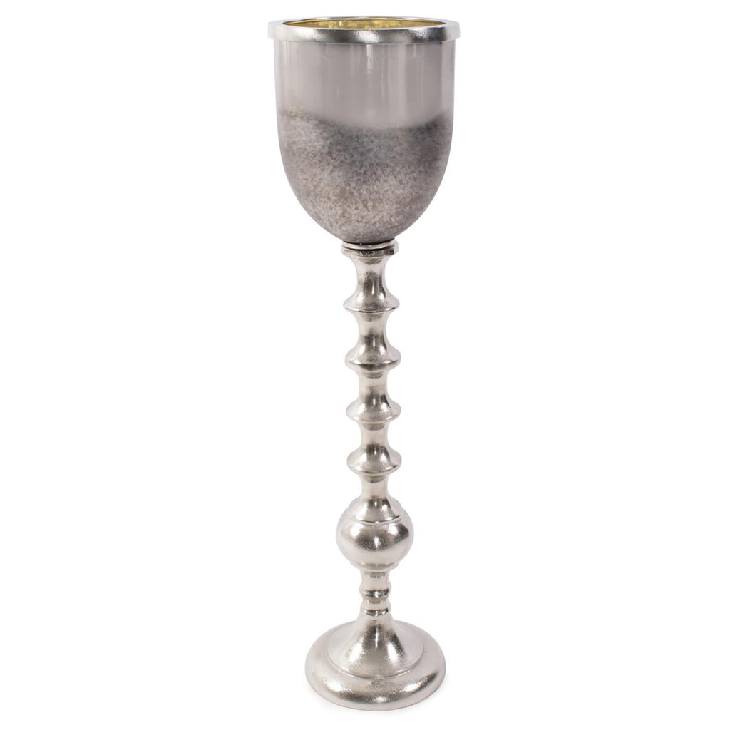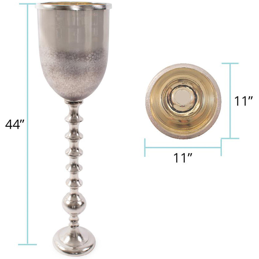 This stunning piece boasts a captivating level of texture and depth, making it a dynamic addition to your decor. Each vase is perched atop a silver stand that is uniquely bubbled out, adding a touch of whimsy and contemporary flair to their design. This combination of intricate texture and playful structure creates an eye-catching ensemble that is sure to become a focal point in any room.