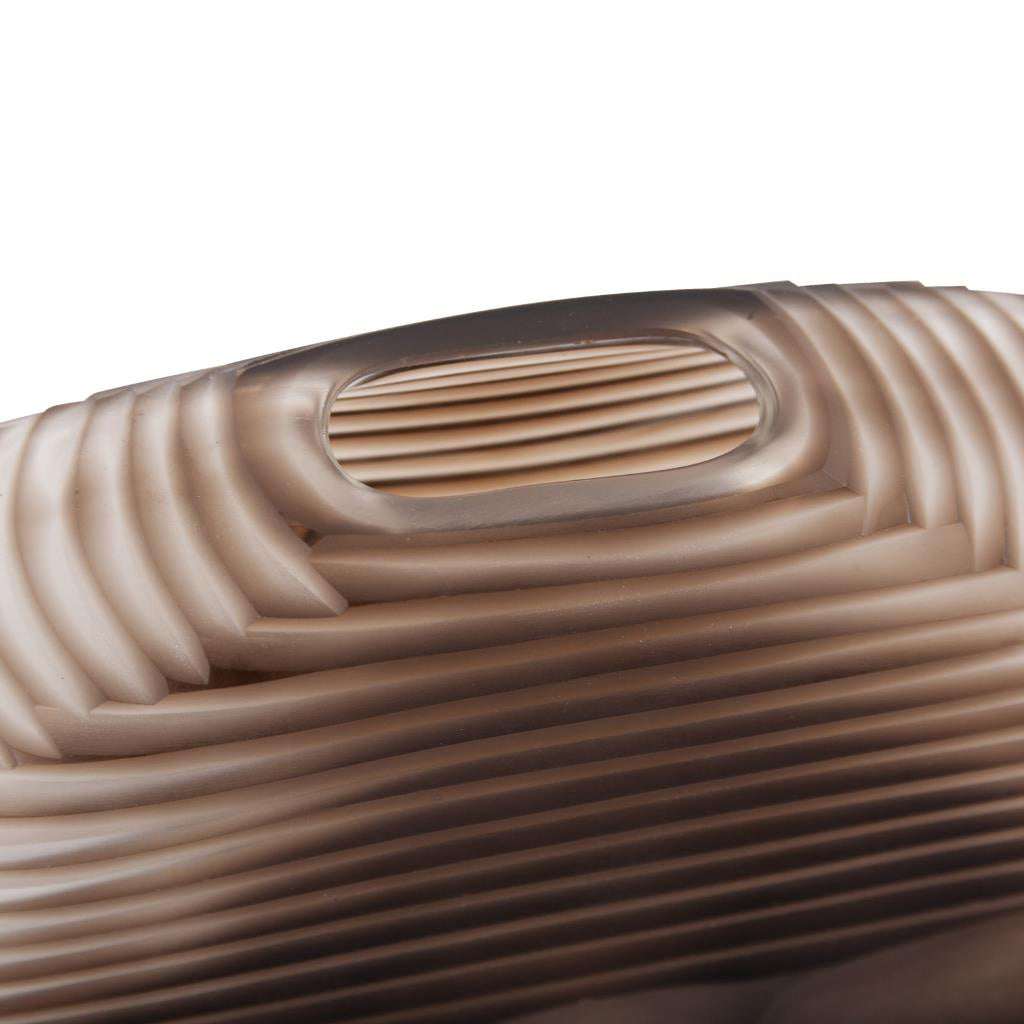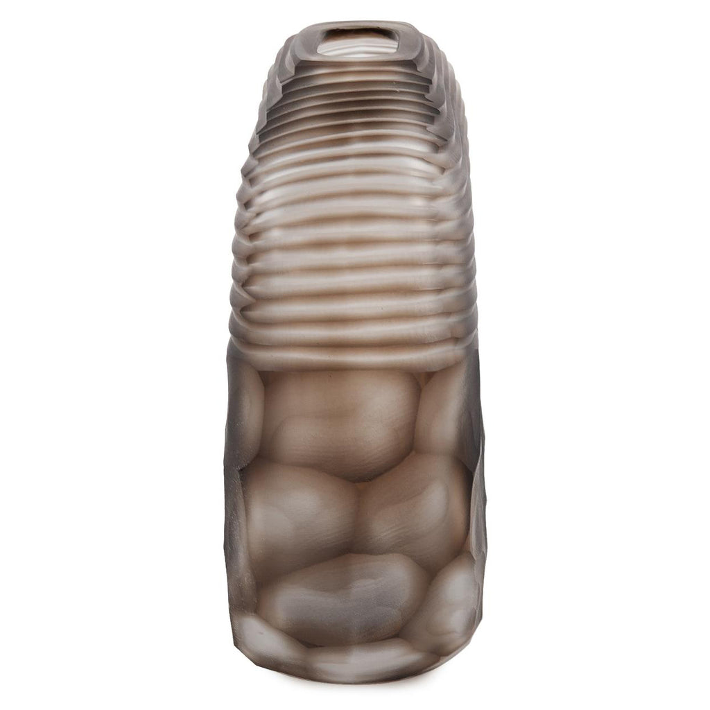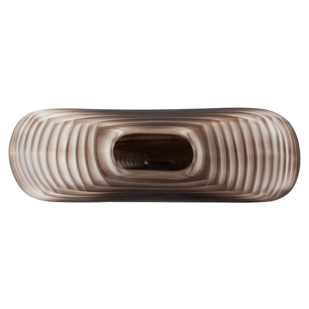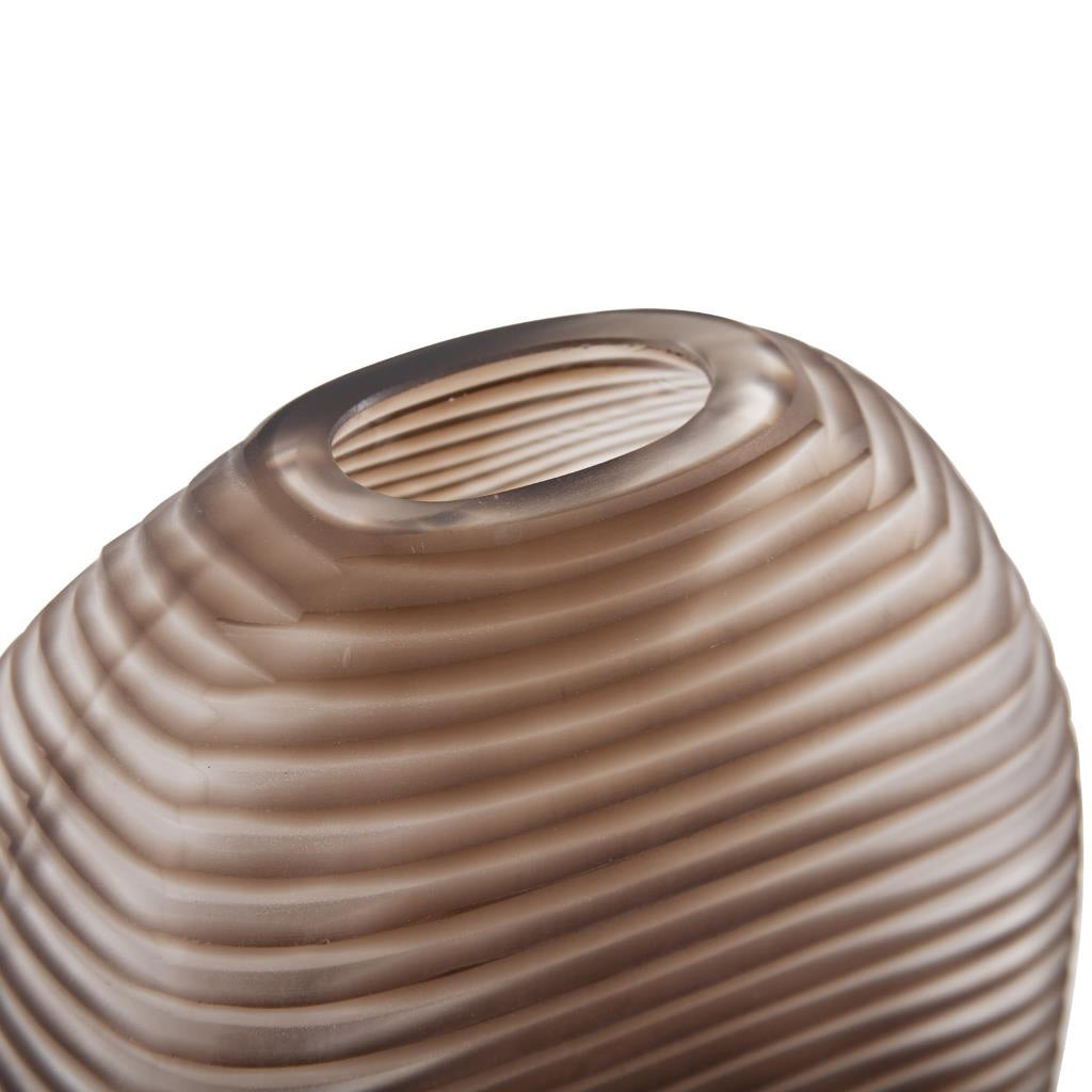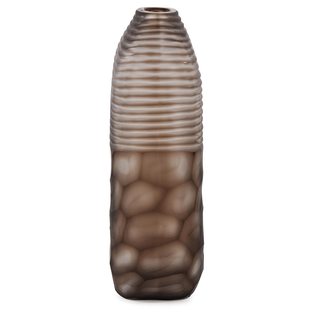 The cut patterns and the use of frosted and translucent techniques gives the Bruni vase it's uniqueness. The deep chocolate brown only increases the richness and details of the texture. Hand crafted these pieces of art glass can easily stand alone or be the showcase for a single fresh blossom.