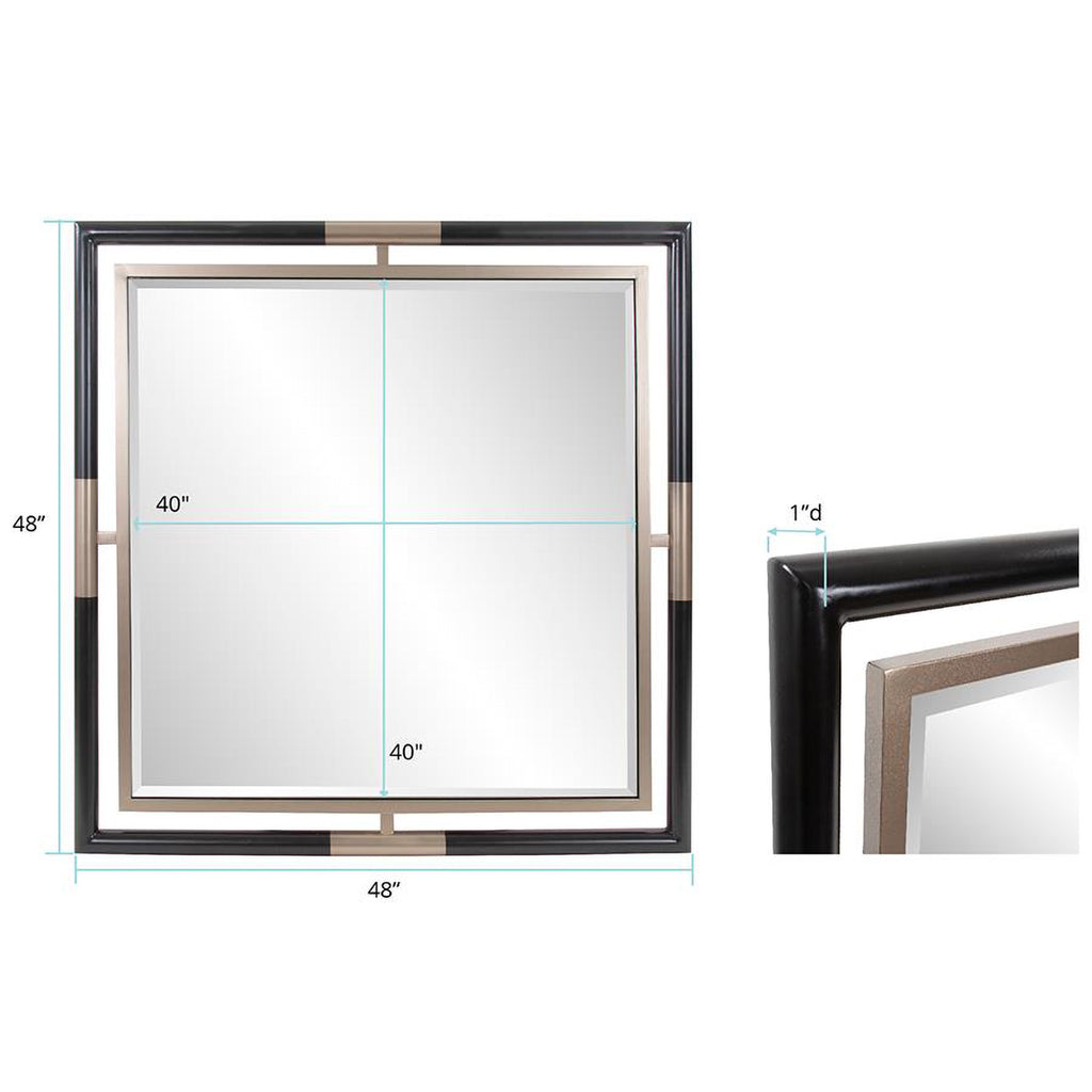 The Fitzgerald collection of mirrors all feature the stunning and rich color combination of antique brass and a matte black. These sophisticated mirrors are each hand crafted and finished by skilled artisans. The large square design of this mirror makes it a valued addition to your home decor. The large sleek double frame design is the perfect finishing touch over a console, sideboard, and anywhere that you want to create a huge impact with lots of style and drama.