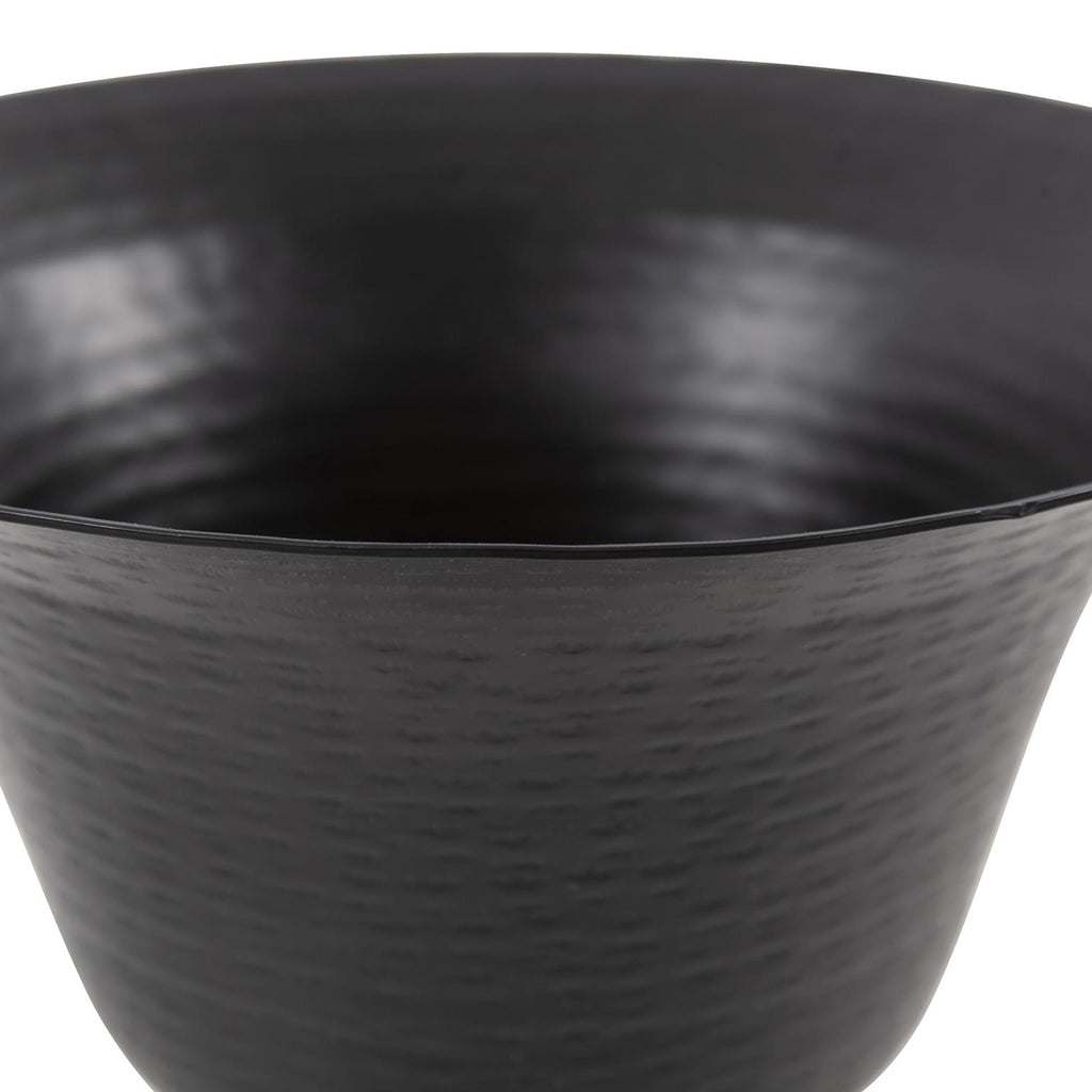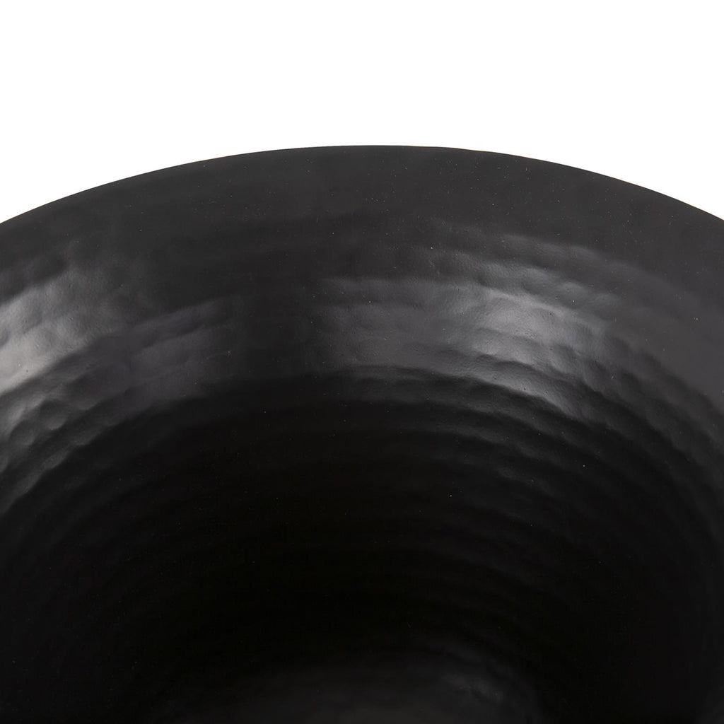 The Em Dash Collection is hand crafted and finished by expert artisans. The simple modern dash pattern also creates a hammered pattern on the inside, that adds to the versatility and beauty of these designs. Each piece can easily stand alone as a decorative accent or grouped together to show the contrast of dark and light elements. Whether it is filled with a plant or left as is, the medium flared deep bowl in matte black will add just the right touch of modern yet classic flare.