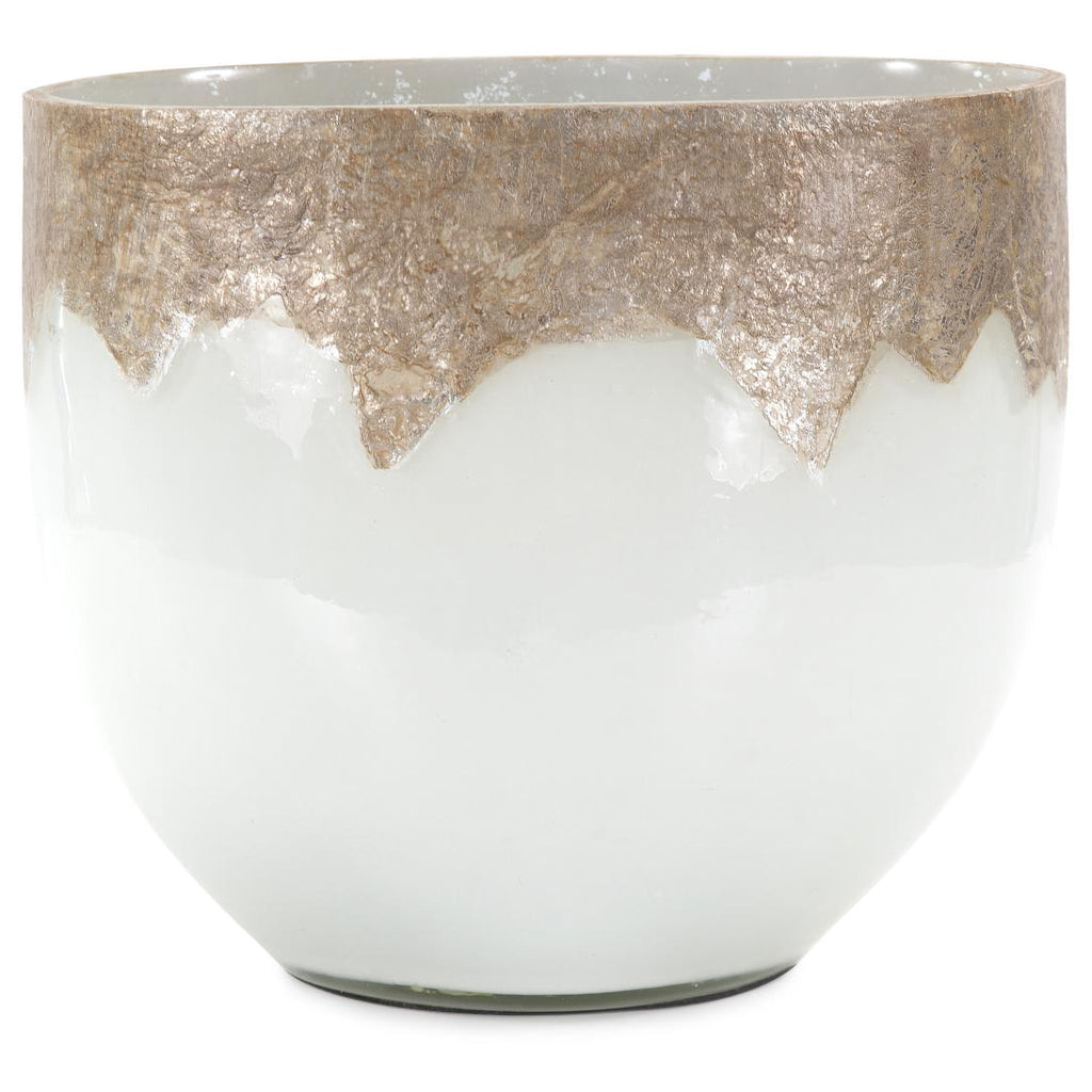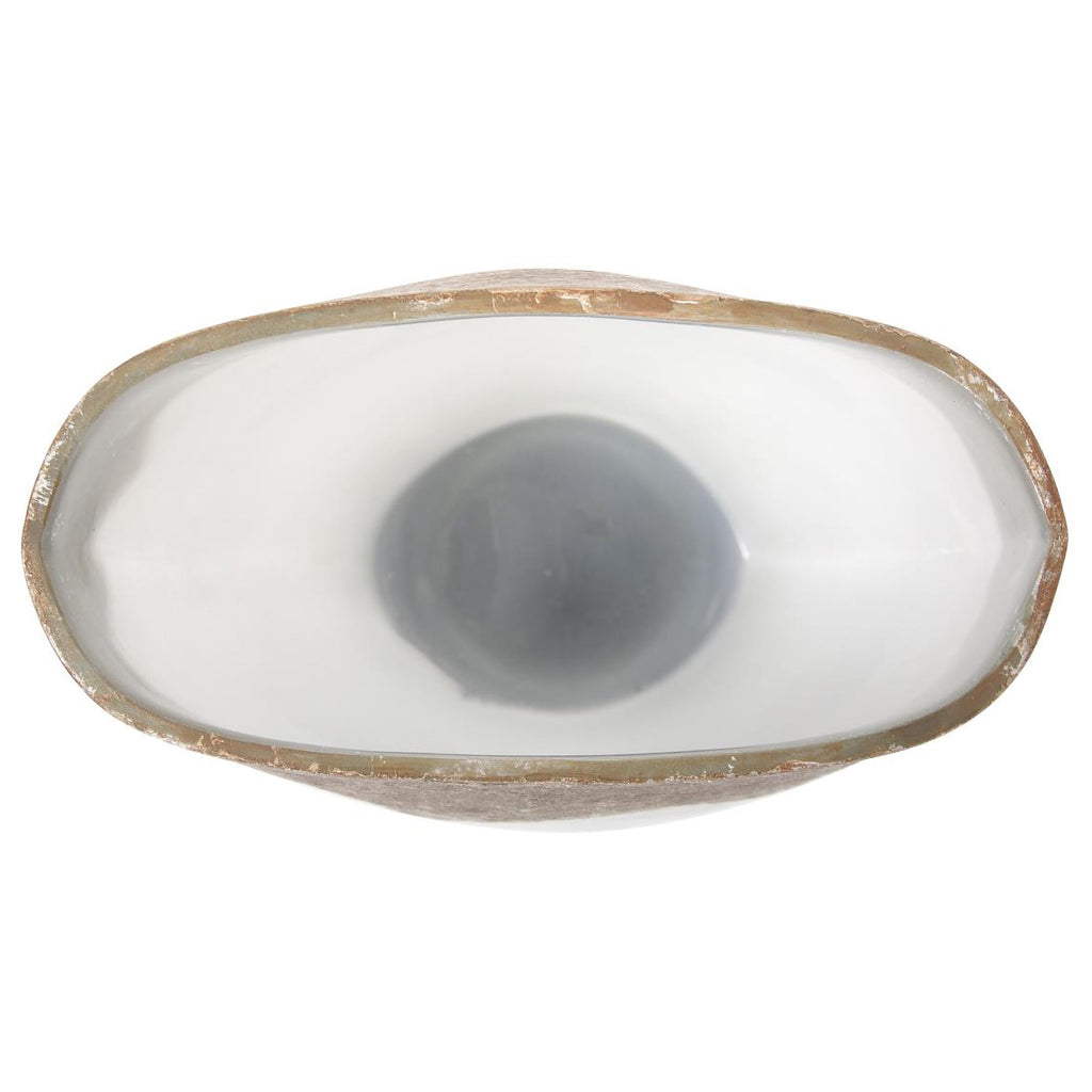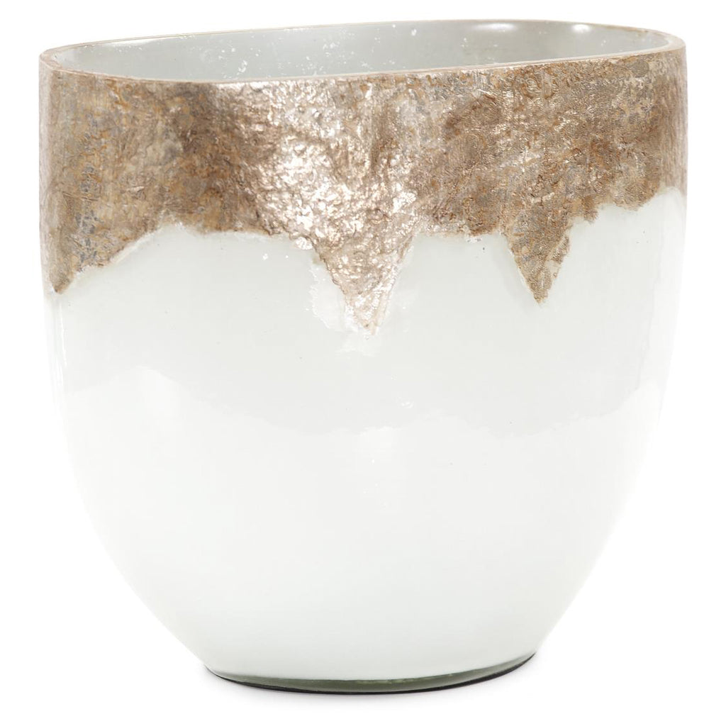 The Midas collection of glass is hand crafted and finished. Inspired by Austrian artist Gustav Klimt, these amazing works of gold and white art glass are individually created. The abstract textured gold with white of the oval bowl can add the perfect accent to any room of the house.