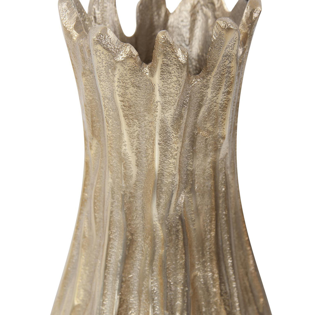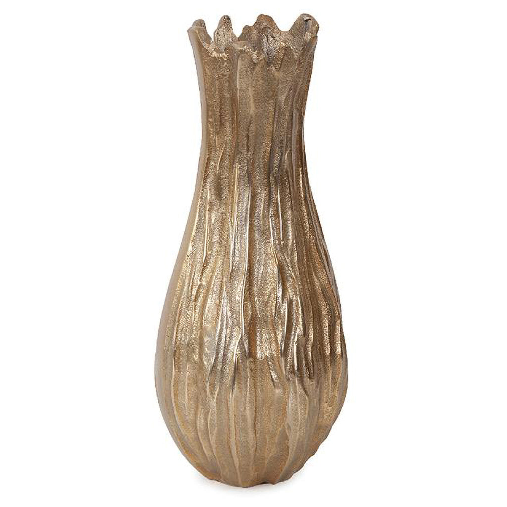 Inspired by the texture of the bark of Sycamore trees in our local forest preserve. After collecting bark samples from older trees that were being removed, we used the samples to create a version of the pattern in cast aluminum. The Sycamore vase is finished in a rustic gold that highlights the deep groove texture as well as the rough cut top rim. Each vase brings a touch a nature to the home in a refreshing new whimsical way.