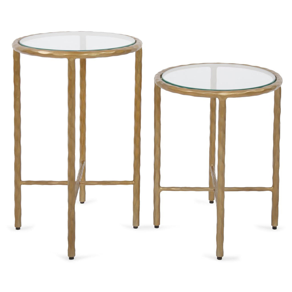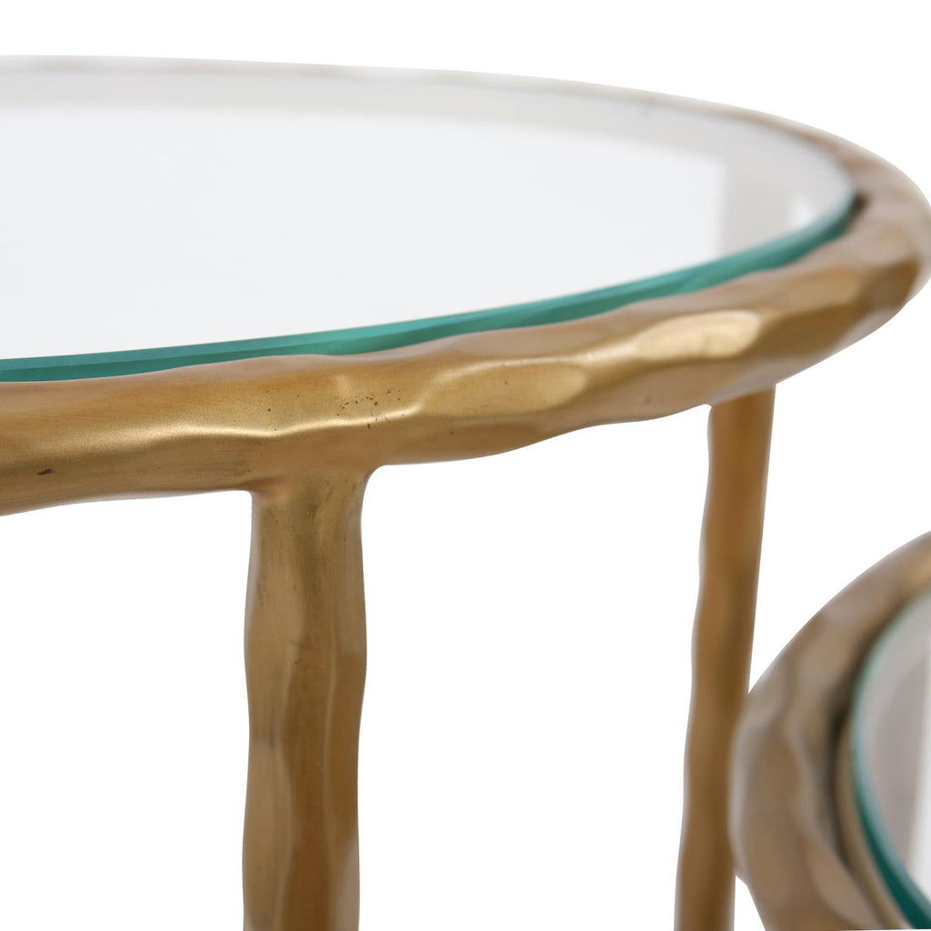 The inspiration for the Treto oval nesting tables was developed from antique tables that were in high demand in the early 20th century. We create our tables with an updated modern flair by using a hand forged look yet clean straight lines. The matte gold bases were finished off with clear tempered polished glass tops. Classically inspired yet modernly valued for the function and style.