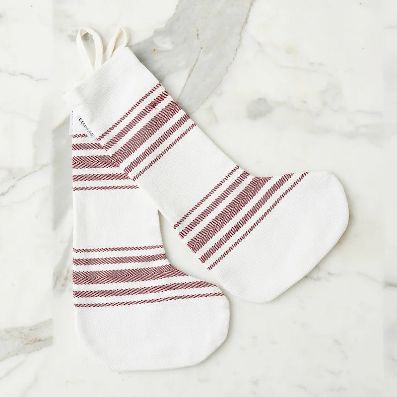 Bring timeless charm to your holiday décor with our Holiday Stockings. Inspired by mid-century grain sack textiles, each stocking features classic red stripes that feel both rustic and refined—perfect for adding a heritage touch to the fireplace mantel, staircase, or entryway. Crafted from soft, durable cotton, these stockings include a convenient loop handle for easy hanging and are finished with a stitched etúHOME tag. Whether styled solo or in a festive grouping, they effortlessly blend old-world appeal with modern sensibility, making them a thoughtful gift or heirloom-worthy accent for years to come.