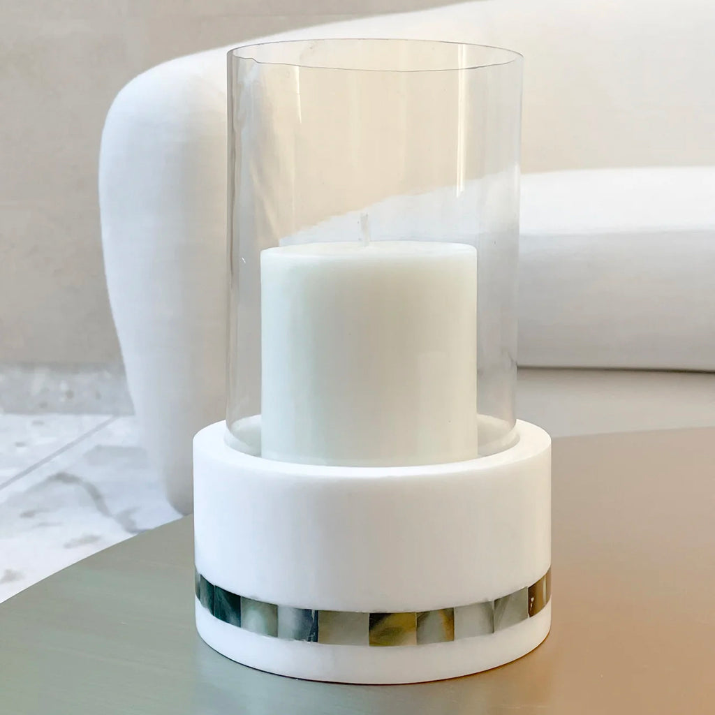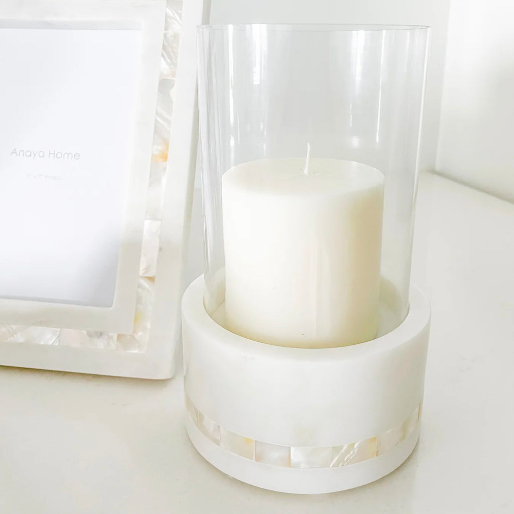 Anaya Mother of Pearl Marble Hurricane Candle Holder