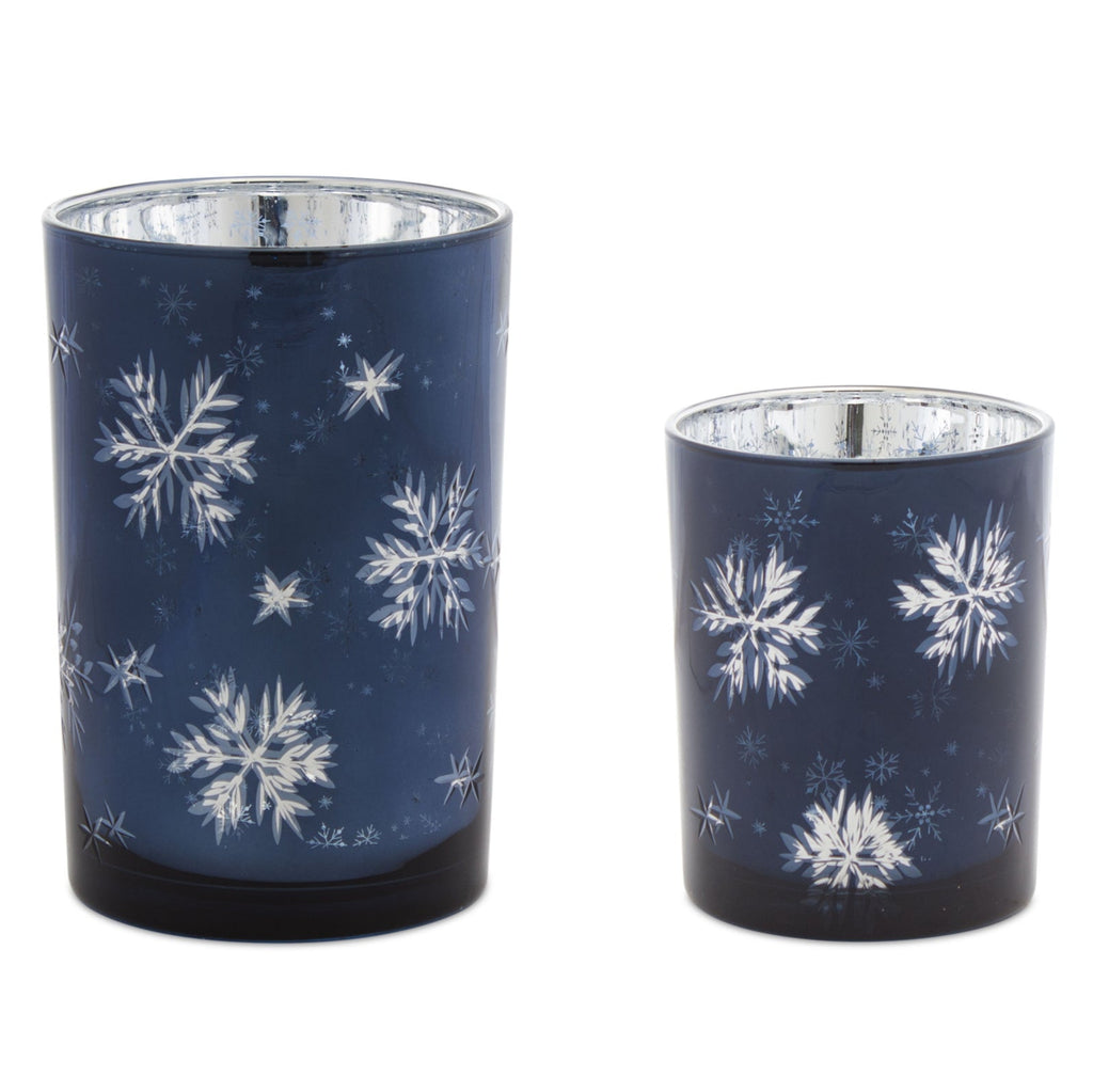Ring in the holiday season with this beautiful set of Snowflake Votive Candle Holders. Featuring two sizes, this set is a great addition to your Christmas home decor. The elegant frosted glass composition paired with the traditional snowflake design creates a stunning and timeless display. Illuminate the set with real wax or LED votive candles. Perfect for your Christmas Day dining table centerpiece.