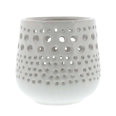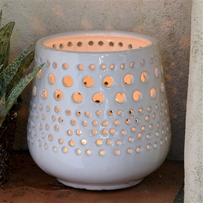 This votive allows a beautiful pattern of light to shine through when you light a candle. Crafted in a Shiny White finish allowing the Lanai Hurricane Votive holder to blend perfectly into any space.