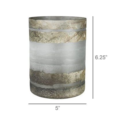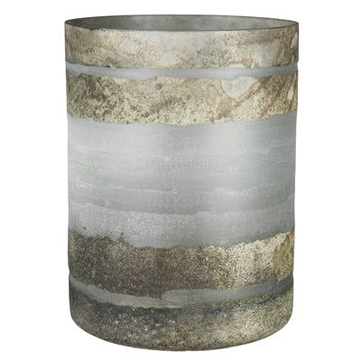 Elevate your space with elegance and warmth with our glass hurricane featuring hand-ground copper banding. Perfect for any home, it blends classic design with modern sophistication, creating a timeless centerpiece.