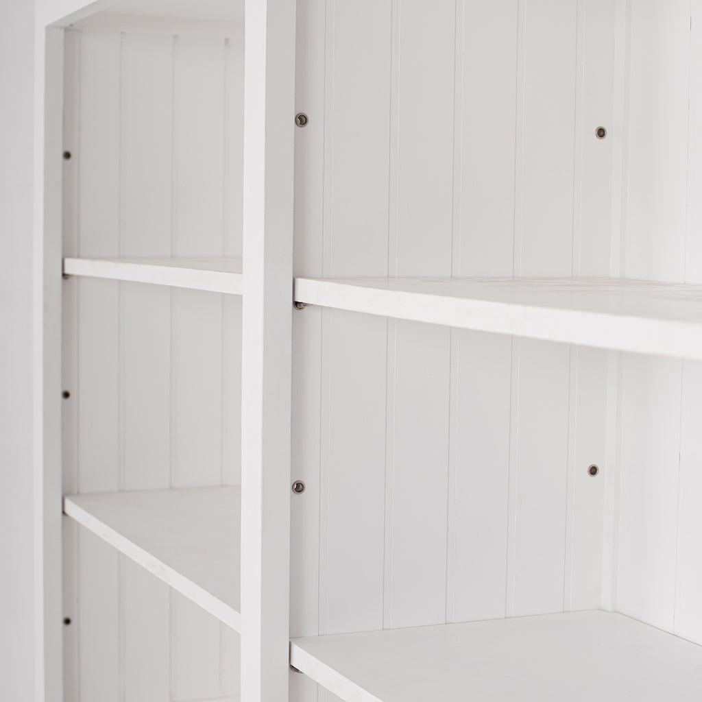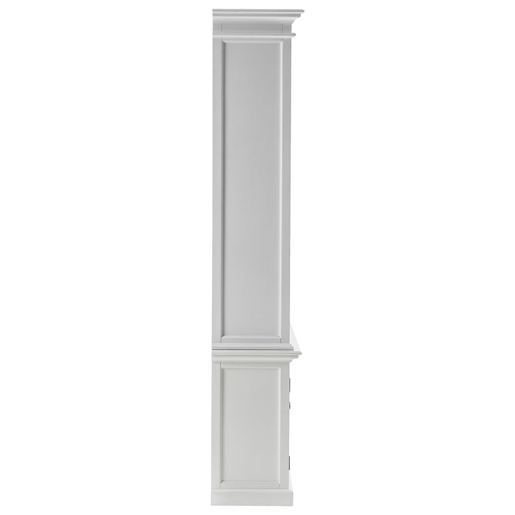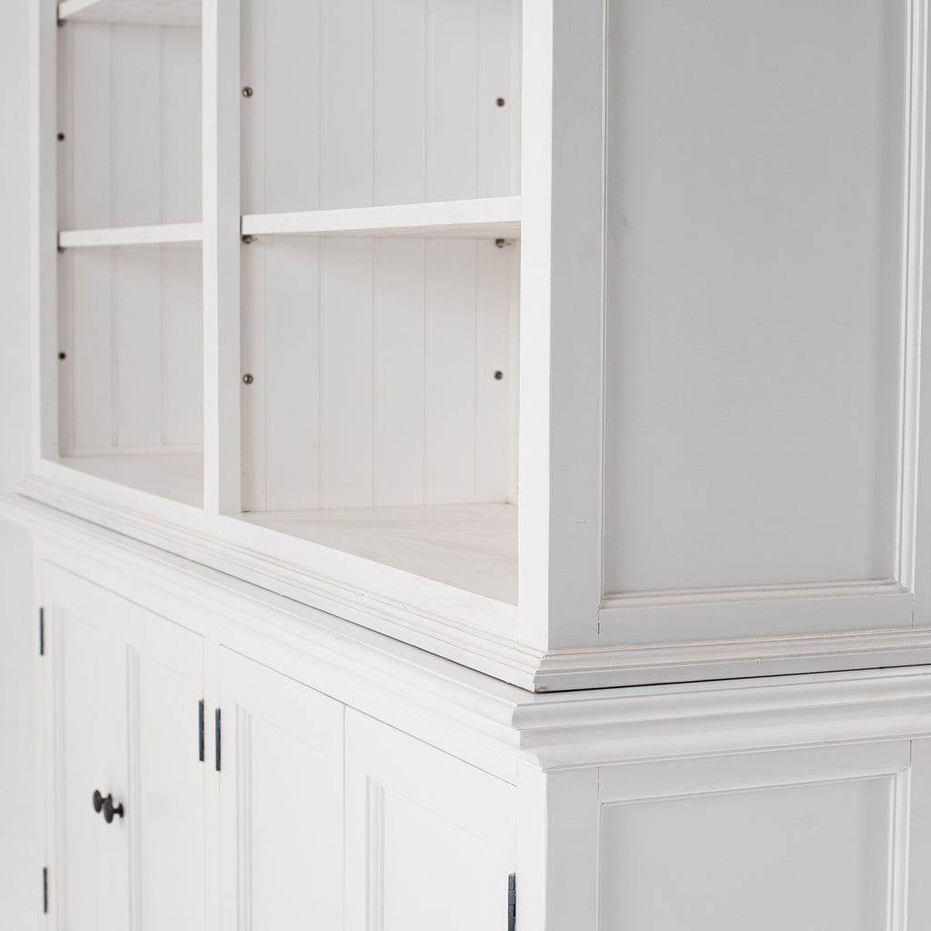 Beckton combines the quaint charm of the French Countryside with the coastal flair of the Eastern Seaboard to form a comprehensive range befitting the dining area, living space or bedroom. Detailed profiling on each piece, together with the warm finishing and antique brass hardware, provides a classic collection for the contemporary home. Hutch Unit for all your storage needs. Attractive wainscoting provides a subtle backdrop to the upper open shelving unit. Base units feature shaker style doors with antique brass hardware. Molding and decorative trim are further enhanced by the semi-gloss painted finish.