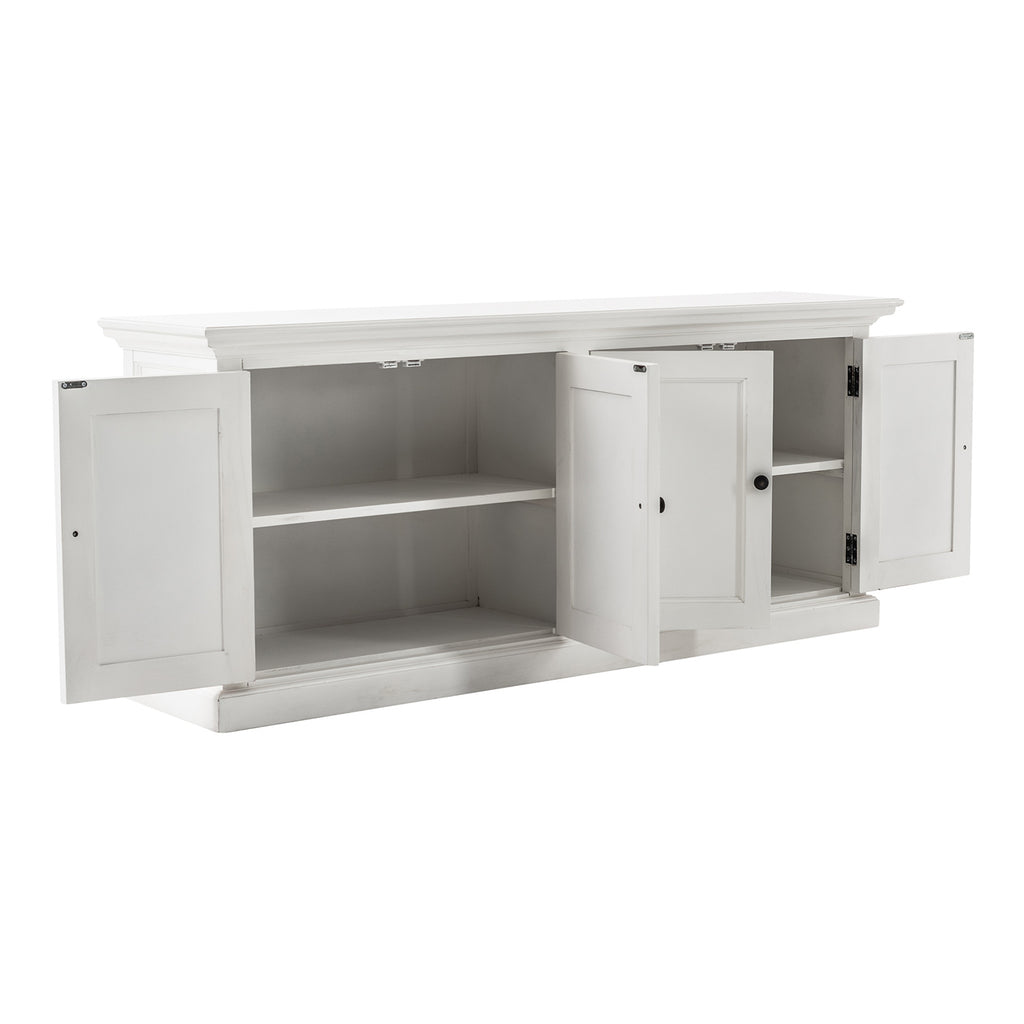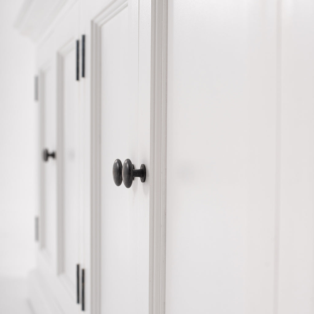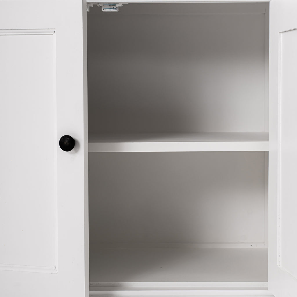 Beckton combines the quaint charm of the French Countryside with the coastal flair of the Eastern Seaboard to form a comprehensive range befitting the dining area, living space or bedroom. Detailed profiling on each piece, together with the warm finishing and antique brass hardware, provides a classic collection for the contemporary home. Hutch Unit for all your storage needs. Attractive wainscoting provides a subtle backdrop to the upper open shelving unit. Base units feature shaker style doors with antique brass hardware. Molding and decorative trim are further enhanced by the semi-gloss painted finish.