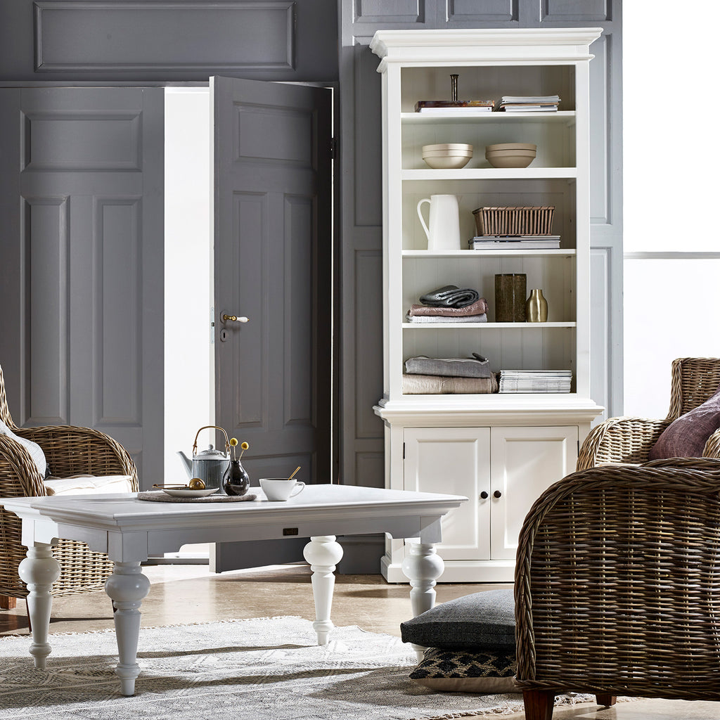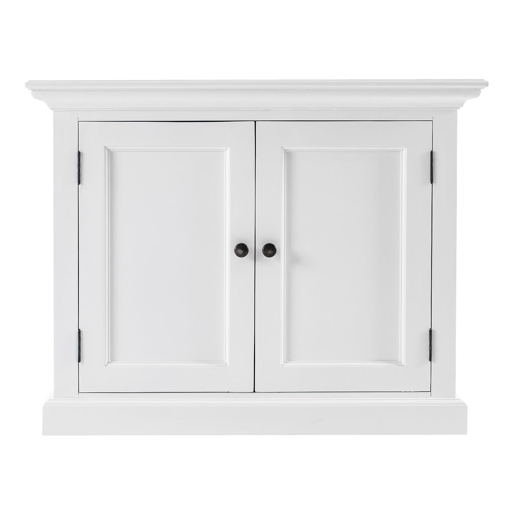 Beckton combines the quaint charm of the French Countryside with the coastal flair of the Eastern Seaboard to form a comprehensive range befitting the dining area, living space or bedroom. Detailed profiling on each piece, together with the warm finishing and antique brass hardware, provides a classic collection for the contemporary home. Hutch Unit for all your storage needs. Attractive wainscoting provides a subtle backdrop to the upper open shelving unit. Base units feature shaker style doors with antique brass hardware. Molding and decorative trim are further enhanced by the semi-gloss painted finish.