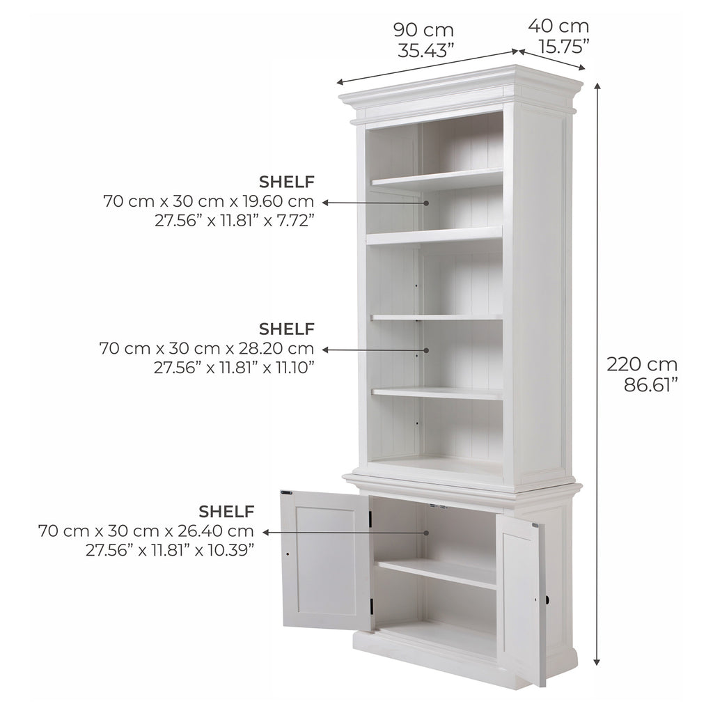• Shelves: Top to Bottom 27.56in W x 11.81in D x 7.72in H, 27.56in W x 11.81in D x 11.10in H, 27.56in W x 11.81in D x 10.39in H