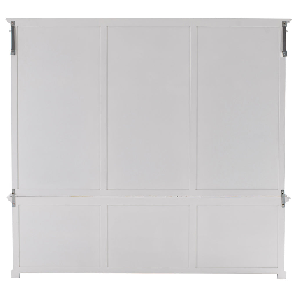 Beckton combines the quaint charm of the French Countryside with the coastal flair of the Eastern Seaboard to form a comprehensive range befitting the dining area, living space or bedroom. Detailed profiling on each piece, together with the warm finishing and antique brass hardware, provides a classic collection for the contemporary home. Hutch Unit for all your storage needs. Attractive wainscoting provides a subtle backdrop to the upper open shelving unit. Base units feature shaker style doors with antique brass hardware. Molding and decorative trim are further enhanced by the semi-gloss painted finish.