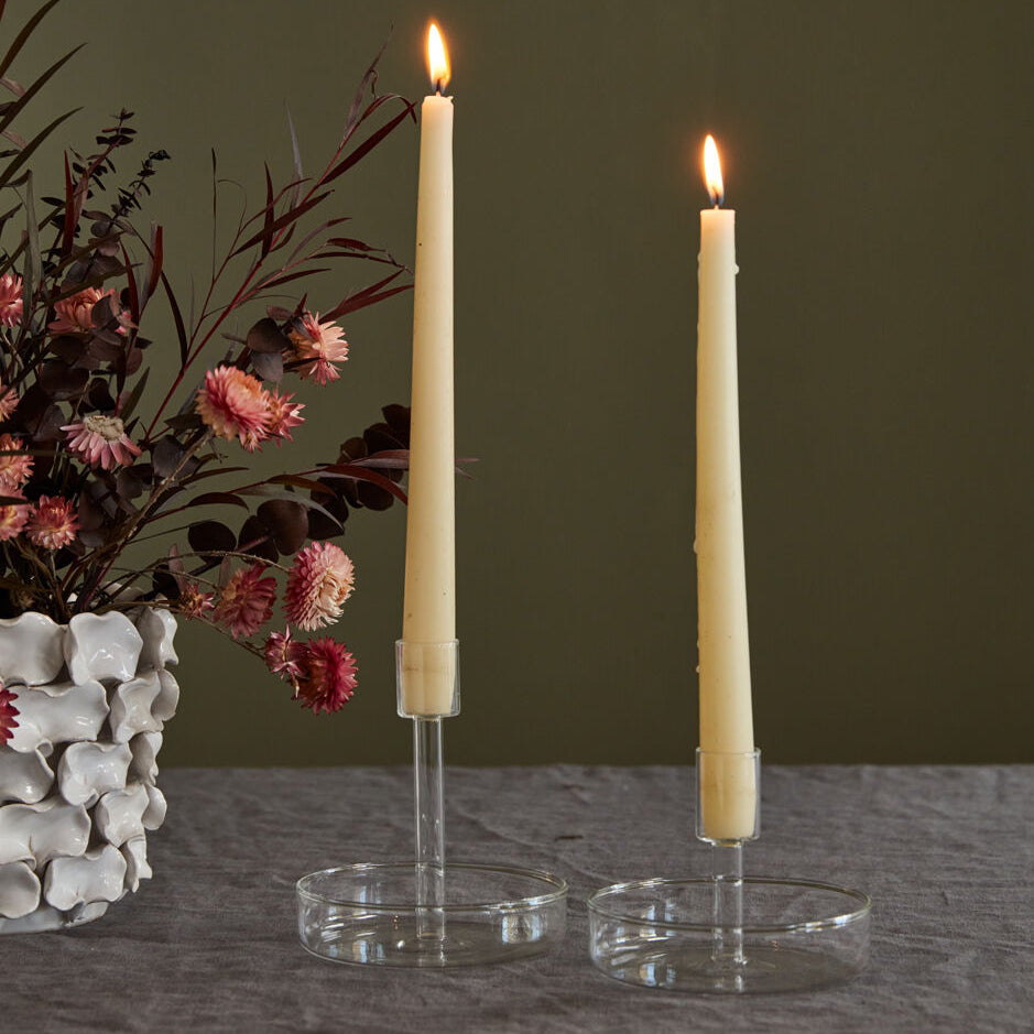 The Adeline Candleholder is a glass taper candleholder with a base to fit our Chimney Tube. Perfect for making a statement with candlelight at every event and tabletop display.