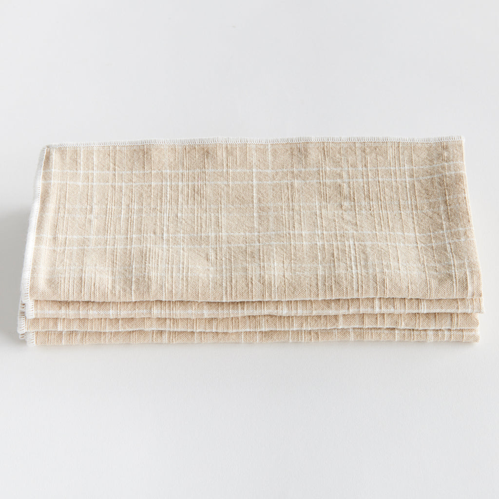 Bring a touch of softness to the table with this set of four cotton napkins. Beautiful in tone and texture, the soft taupe is made to coordinate with any tablescape.