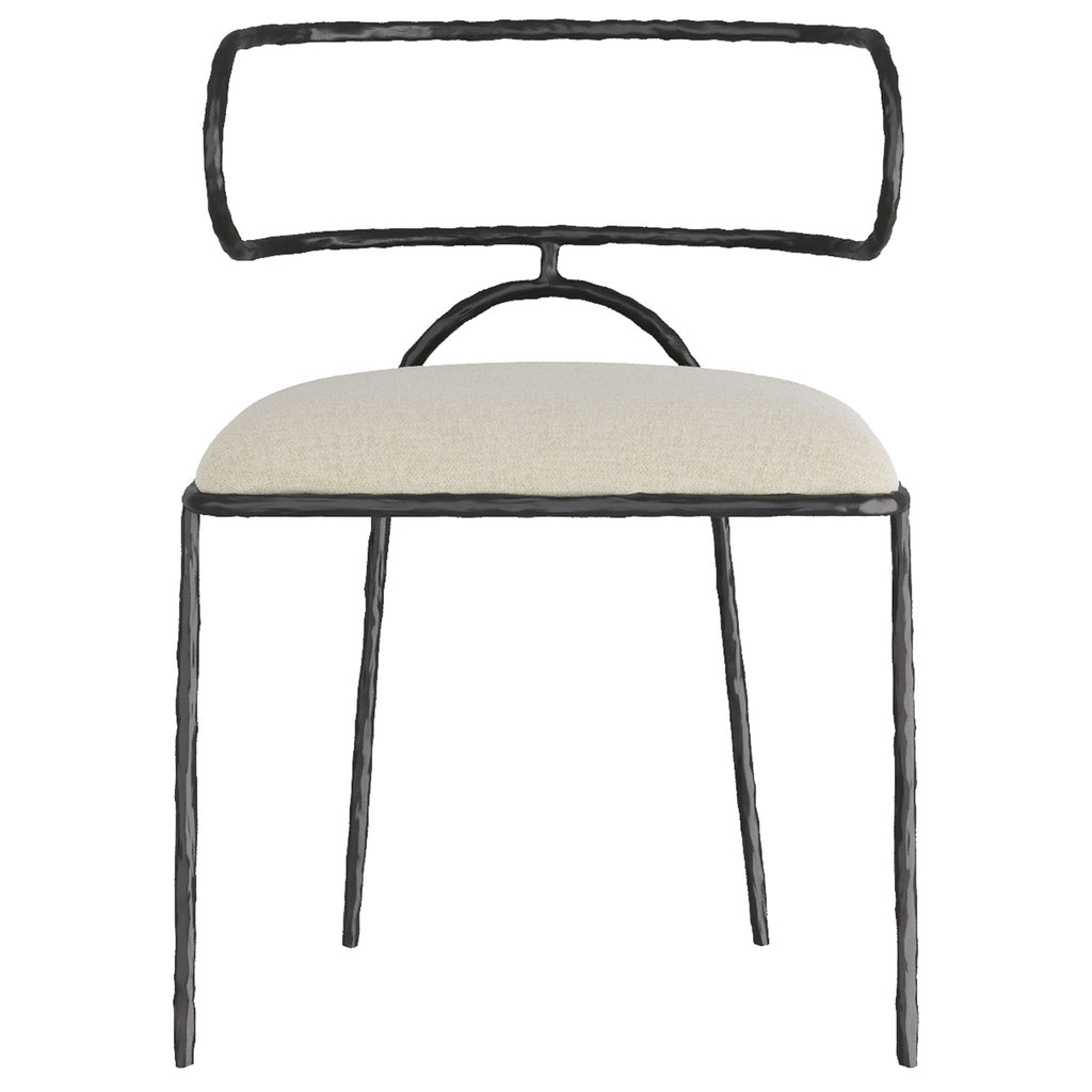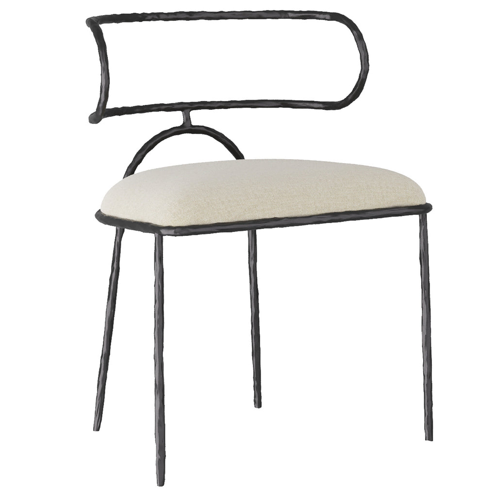 The flowing lines of the aisha are given an industrial edge with a hand-hammered frame of blackened iron. Influenced by the monochromatic minimalism of line art, this sleek style is completed with a subtly padded natural linen seat for comfort.