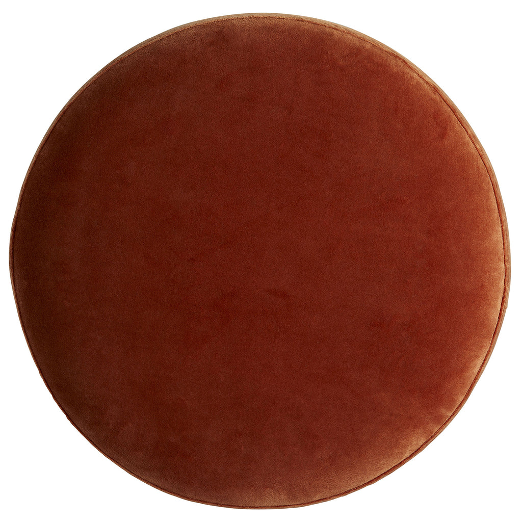 Elegant yet daring this oversized drum-style ottoman brims with style. We've upholstered it in a persimmon velvet and fashioned it to a sleek champagne steel plinth that swivels for a touch of visual—and functional—drama. The trend-forward fabricmakes this a great accent piece for any room.