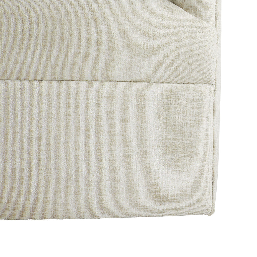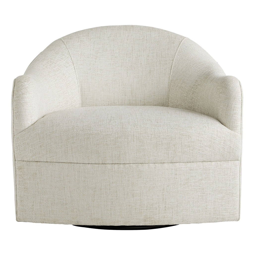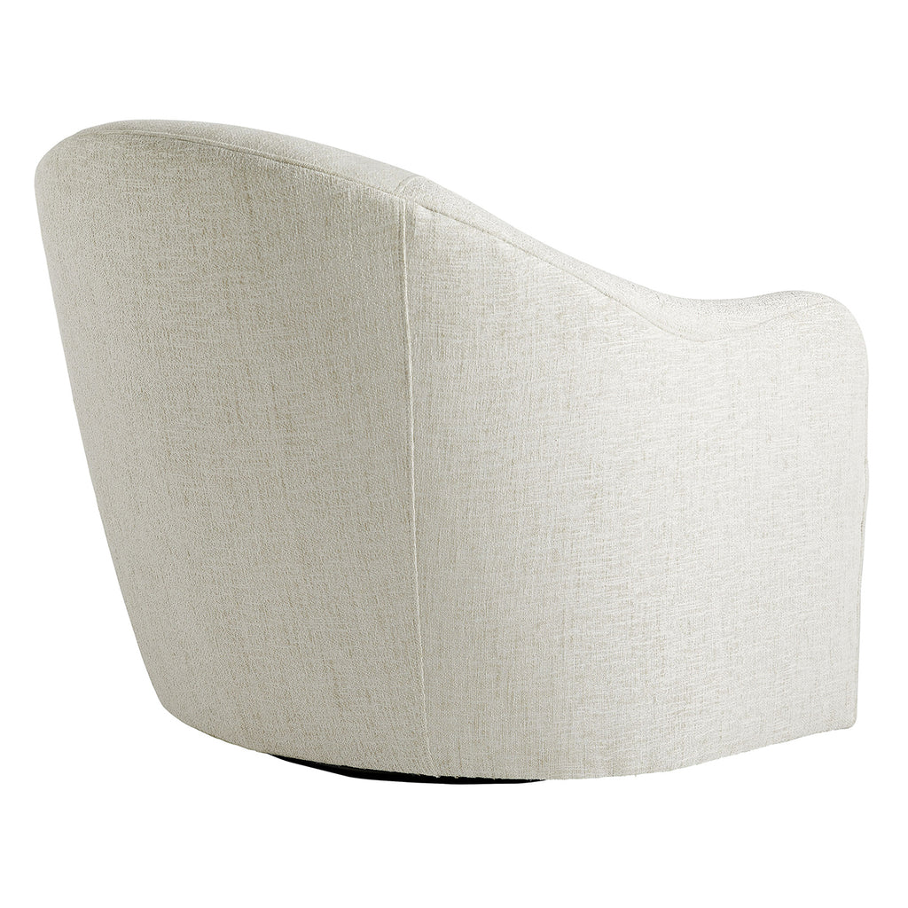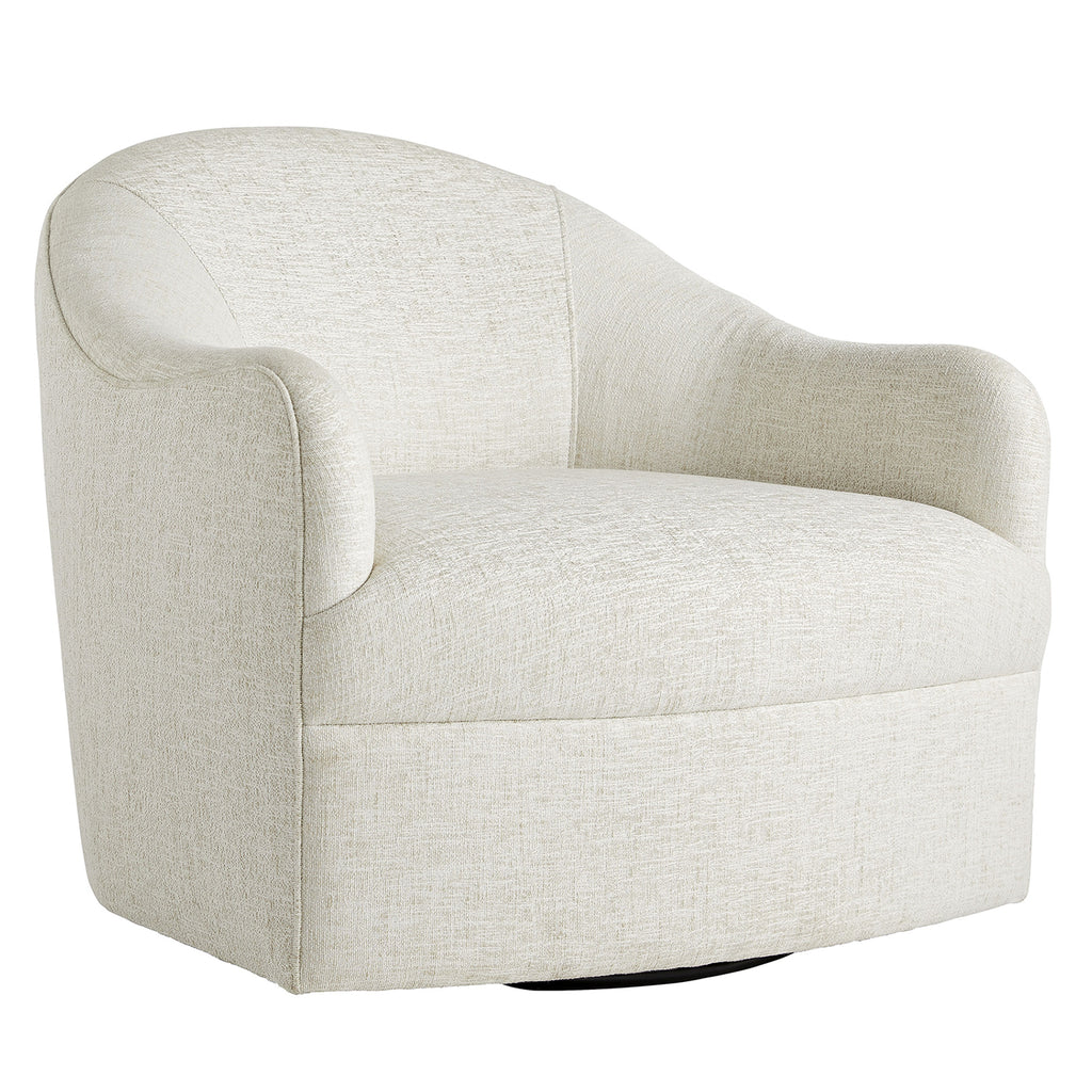 Delve into the depths of comfort with this luxe lounge chair. The deep seat and barrel back are quite inviting while the large-scale size provides a new level of comfort that is hard to resist. Upholstered in this tub-stylechair rests atop a blackened iron swivel base that is neatly concealed from view. Look to place this piece in your favorite entertaining space next to a drink table or pair with another to create an even more cozy environment.