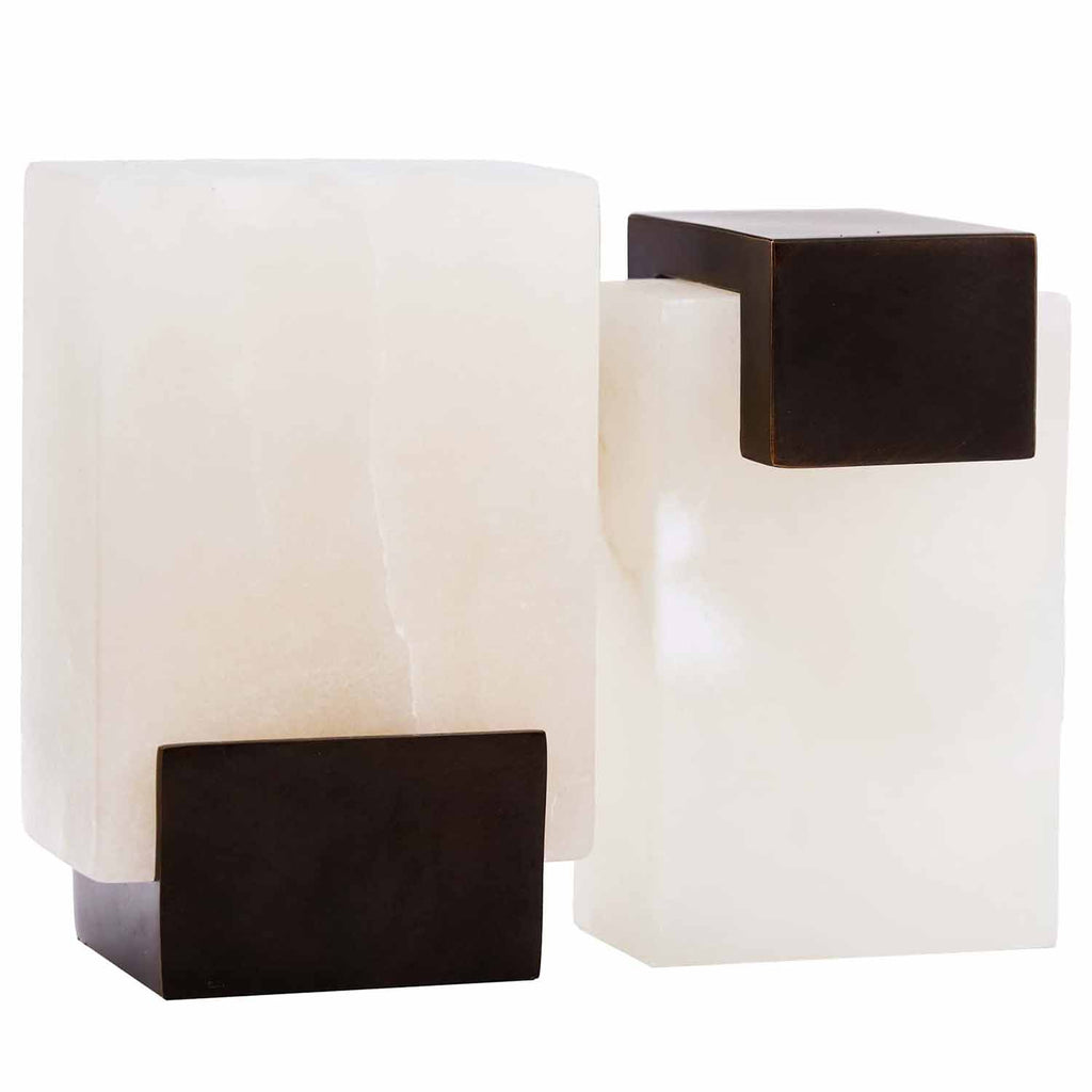 Arteriors Home brings sophistication and style to any interior design project with their collection of decor and tabletop pieces. Arteriors Home bookends allow you to showcase your unique personality and create a space that truly feels like home. As bookends or sculpture, the Arteriors Tolliver white alabaster and bronze steel bookends celebrate elemental geometry. The pieces, which can be displayed in various orientations, can be used to flank books or as stunning sculptural objects. Finish will vary.